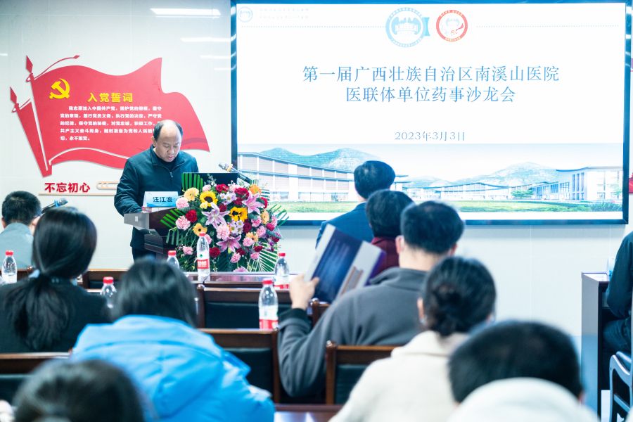 为推动医院建设紧密型城市医疗集团和县域医共体,探索一体化管理,进一步深入交流,推动各医联体单位药事管理工作深入发展,提高合理用药水平,3月3日,广西壮族自治区南溪山医院顺利举办第一届医联体单位药事管理沙龙会,该院党委副书记、院长刘宇军出席会议并致辞,来自医联体单位及总院药学部相关药学人员参加本次会议。