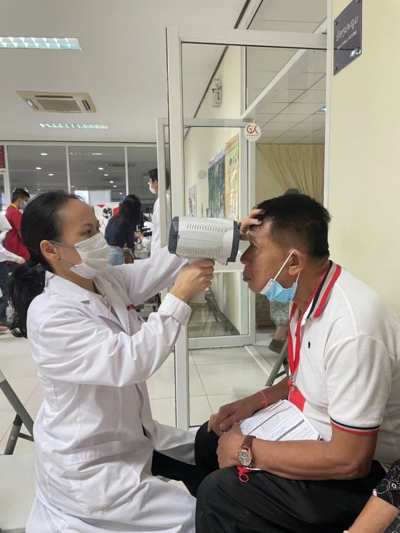 2023年6月2日至7月21日,罗海燕又与同事赴老挝万象市参加“消除白内障致盲行动”第三期援外医疗队工作,作为该批医疗队副队长及临时党支部副书记,带领护理小组4名队员承担了术前眼压测量、角膜曲率测量、眼部A超、眼部B超、人工晶体度数计算、常规术前准备、术中配合、术后检查及宣教等一系列工作,共顺利完成了540例白内障手术,为老挝人民带去了光明和希望。