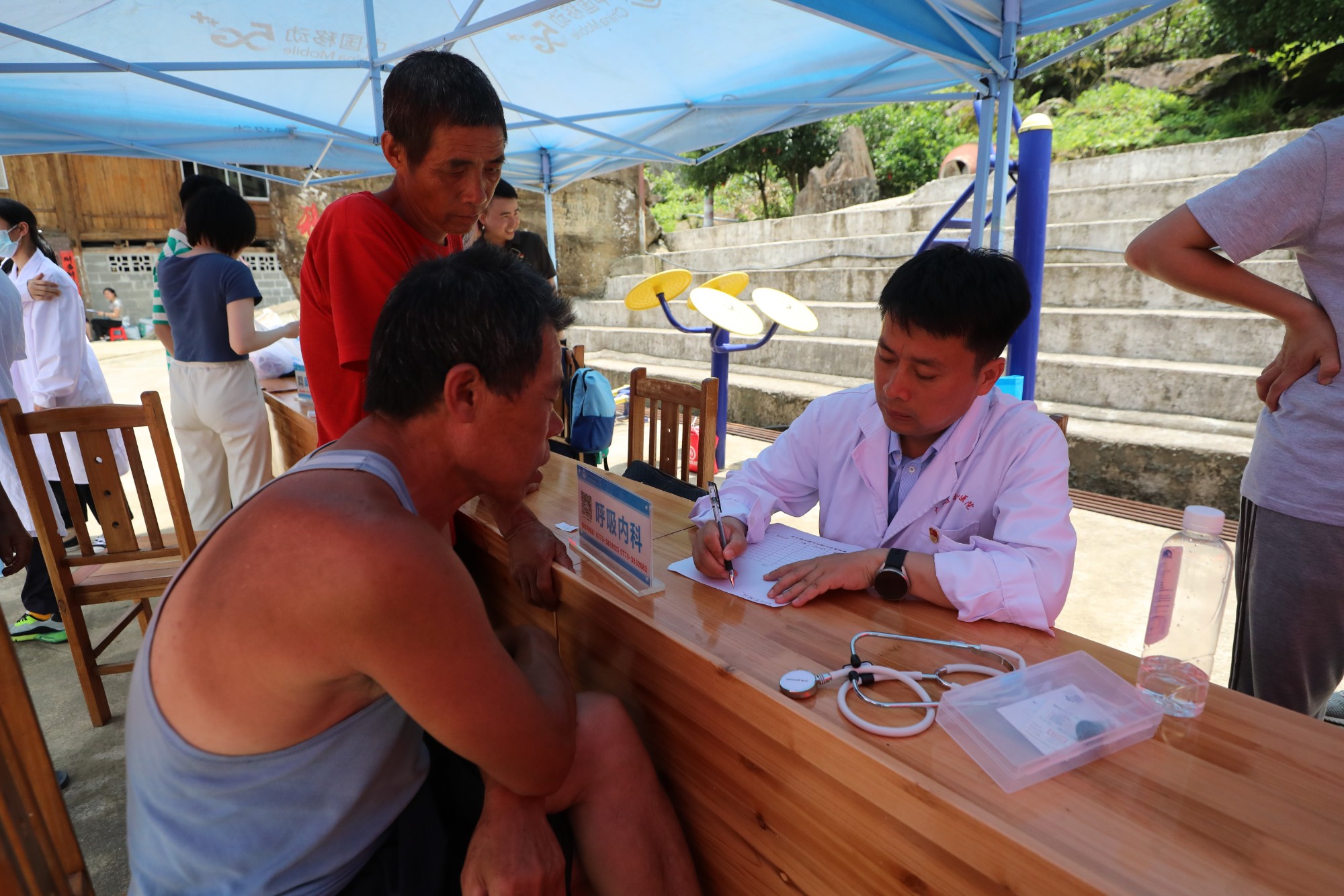 医院呼吸与危重症医学科一病区主任佘巍巍为村民提供健康咨询 伍家琪 摄