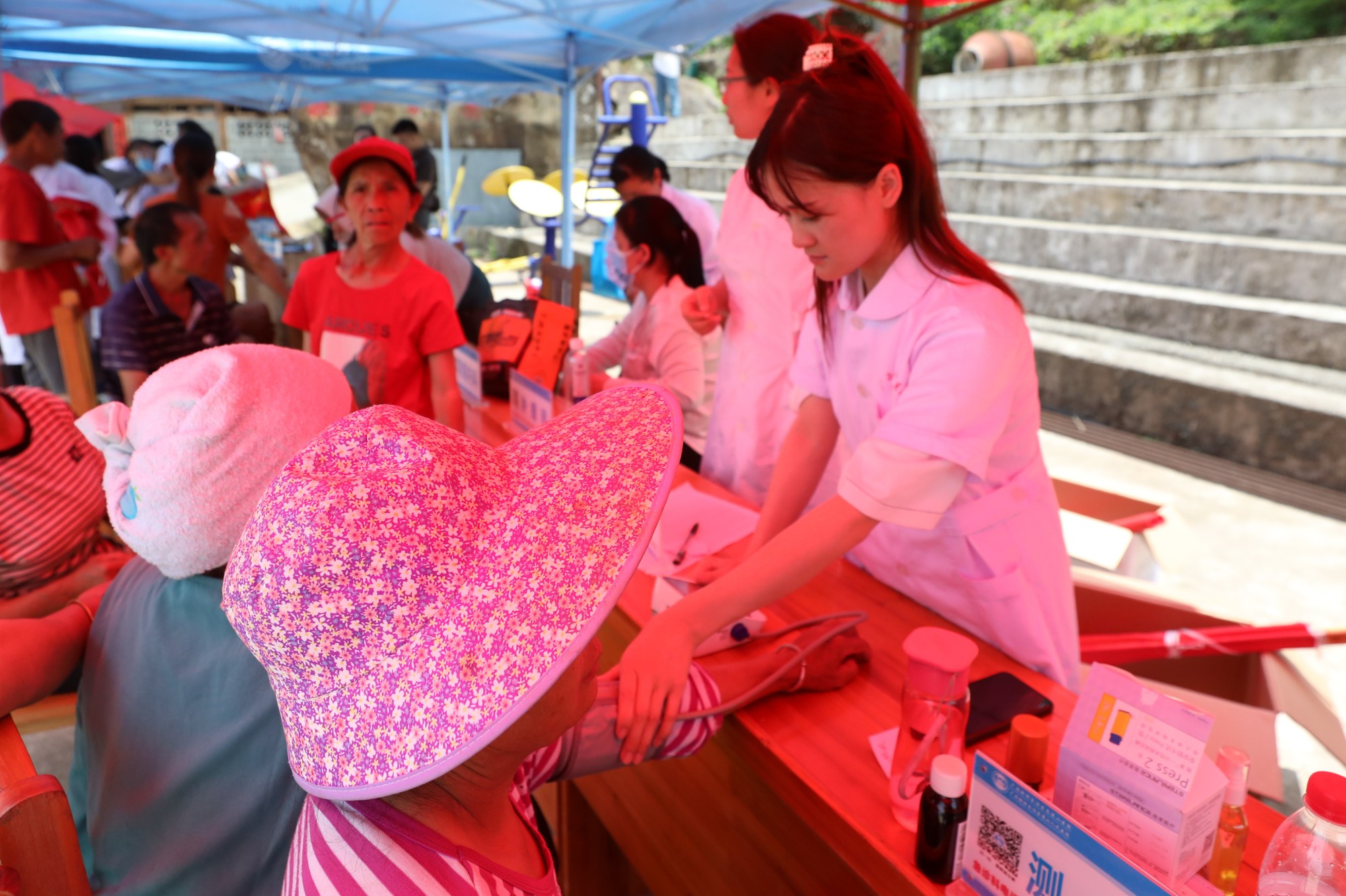 医院医护人员为村民测量血压 伍家琪 摄