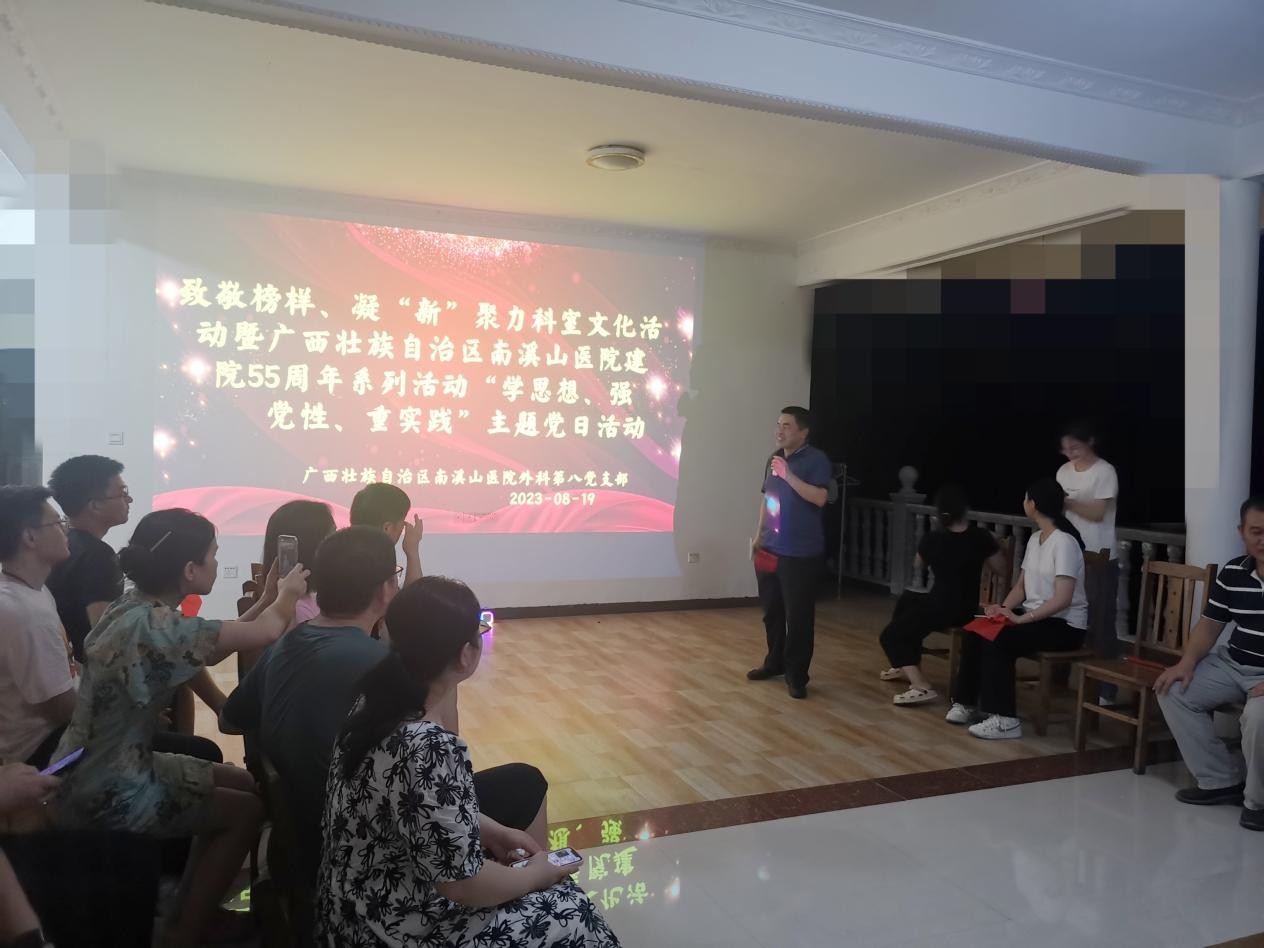 8月19日,正值第六个中国医师节,广西壮族自治区南溪山医院外科第八党支部组织党员开展主题党日活动,致敬医者榜样,凝聚新人力量,结合工作实际谈廉洁从业。