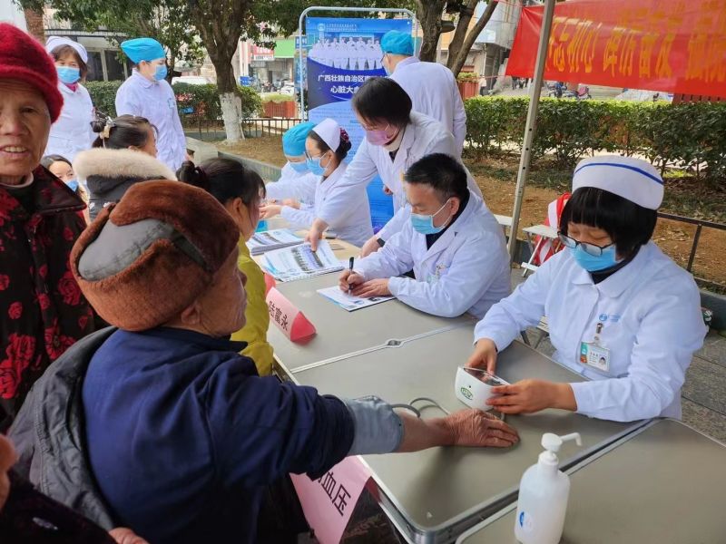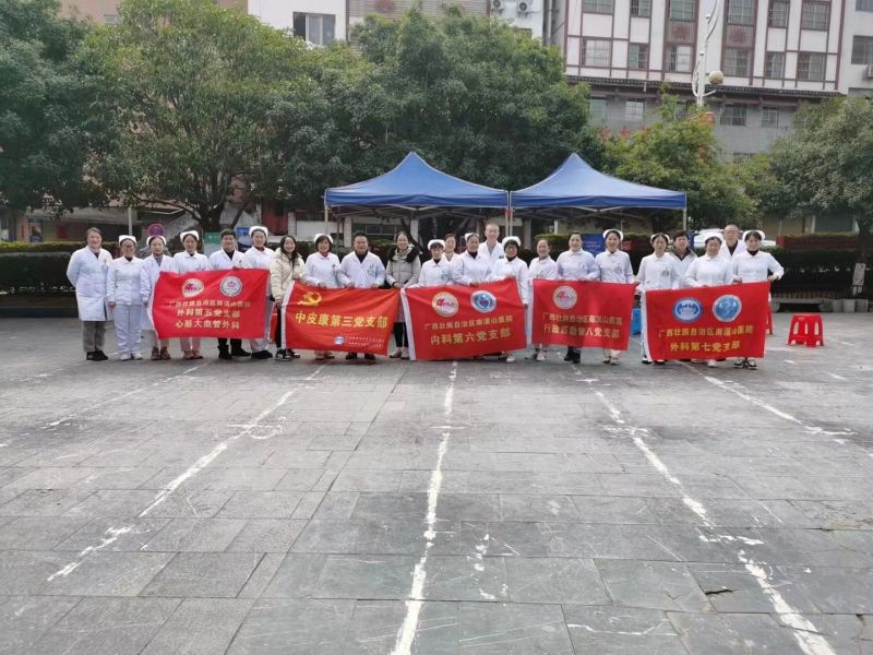 2月25日,广西壮族自治区南溪山医院的中皮康第三党支部、内科第六党支部,外科第五、第七党支部以及行政后勤第八党支部5个支部,共26名党员、积极分子,前往资源县与资源县人民医院的医务人员联合开展主题党日活动,为民健康义诊。