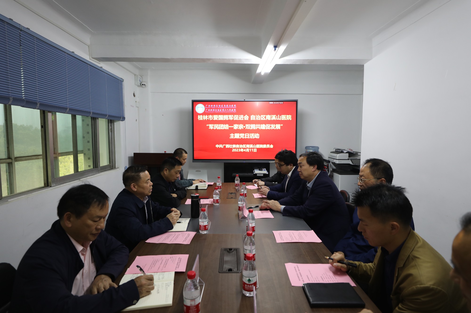 4月11日,广西壮族自治区南溪山医院与桂林市爱国拥军促进会开展“军民团结一家亲 双拥共建促发展”主题党日活动,共谋军民融合新举措。