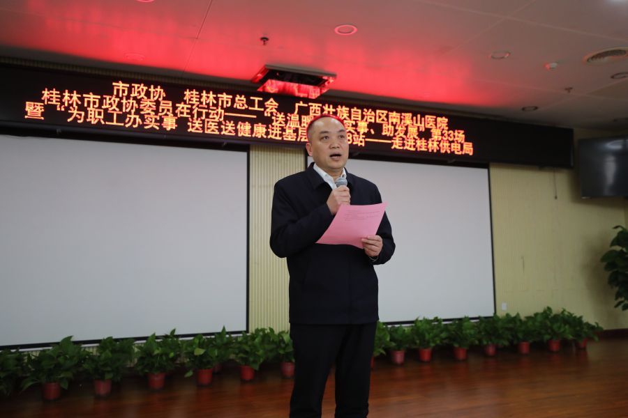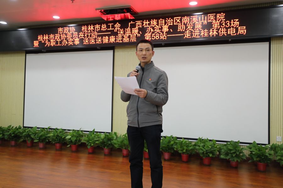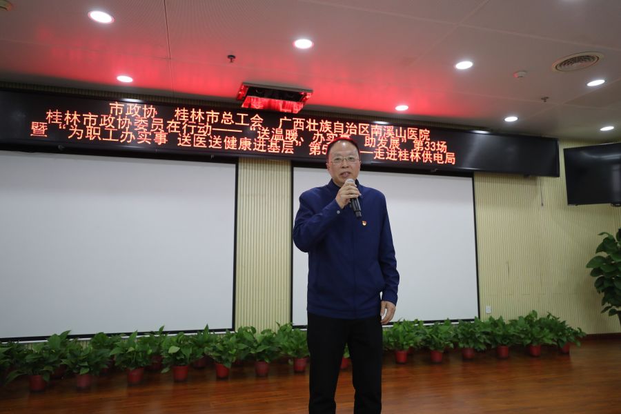 桂林市总工会副主席周世伟高度评价此次活动,他表示,此次活动是深入学习宣传贯彻党的二十大精神的具体举措,也是贯彻落实习近平总书记关于学雷锋志愿服务重要论述的实际行动。桂林市总工会联合自治区南溪山医院,共同开展为职工办实事,医送健康进基层的活动,深受广大企事业单位的一致好评。此次活动以送医上门的形式走进桂林市供电局,为广大电力系统干部职工带来健康讲座以及义诊活动。电力职工是千家万户的“光明使者”长期奋战在电力保障运维一线,工作压力大,身心健康也会受到一定的影响,此次活动为职工们的健康保驾护航,市总工会将继续关注并支持南溪山医院送健康活动,让桂林更多单位、职工了解和掌握必要健康保健知识,在单位就能享受到大医院的优质服务。