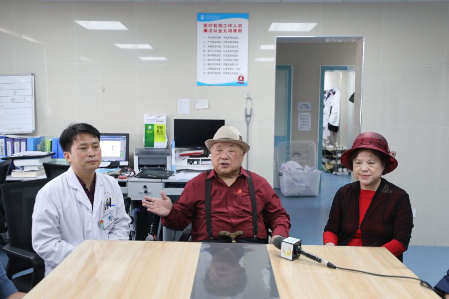当时正处于桂林新冠感染高峰期,南溪山医院在面临医务人员感染、医疗物资紧缺的压力下,仍力排众难,统筹调度,先后开设呼吸与危重症医学科四大病区,尽全力为有需求的患者提供医疗服务。针对何老病情的特殊性,南溪山医院高度重视,特派呼吸一区主任佘巍巍率领其团队为何老制定诊疗方案,经过共同努力,何老最终转危为安。