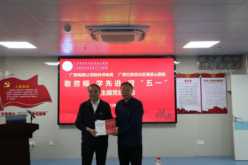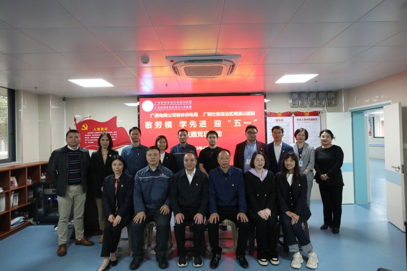4月28日,自治区南溪山医院与广西电网公司桂林市供电局联合开展“致敬劳模英雄,喜迎五一劳动节”主题党日活动,双方通过实地参观和座谈交流的形式,学习红色历史,致敬新时代劳动楷模。