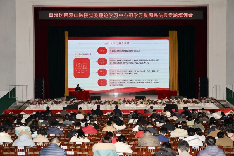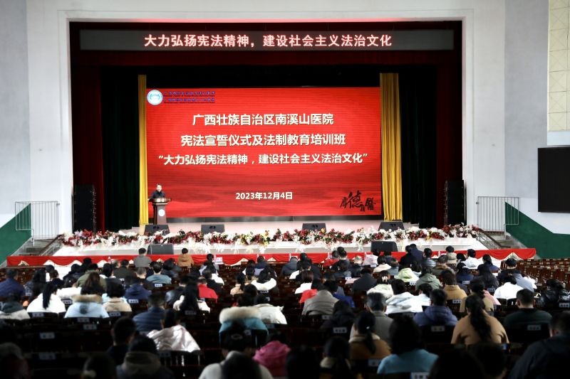 12月4日是第十个“国家宪法日”。当天下午,广西壮族自治区南溪山医院党委举行宪法宣誓仪式及法制教育培训班。象山区人民法院党组书记、院长莫刚顺以《学好用好民法典 ,防患和处理医疗纠纷》为主题,为与会人员作法治教育专题讲座;医院党委书记柳宏林监誓并讲话,党委副书记、院长李朝旭领誓,纪委书记喻泽军主持仪式。