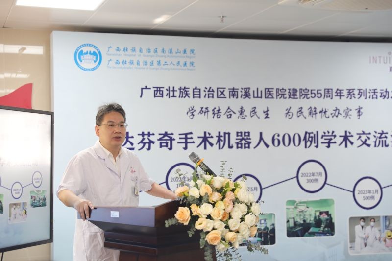 5月26日,广西壮族自治区南溪山医院举办建院55周年系列活动之达芬奇手术机器人手术例数突破600例学术交流活动,与国内知名专家切磋问道,回顾该院过往618例机器人手术成效,通过学术讲座、理论指导、手术实操等学研结合的交流,不断提升运用尖端科技为民解忧办实事的能力。