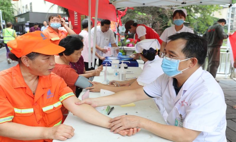 自治区南溪山医院全科医学科医护人员为社区居民测血糖、量血压