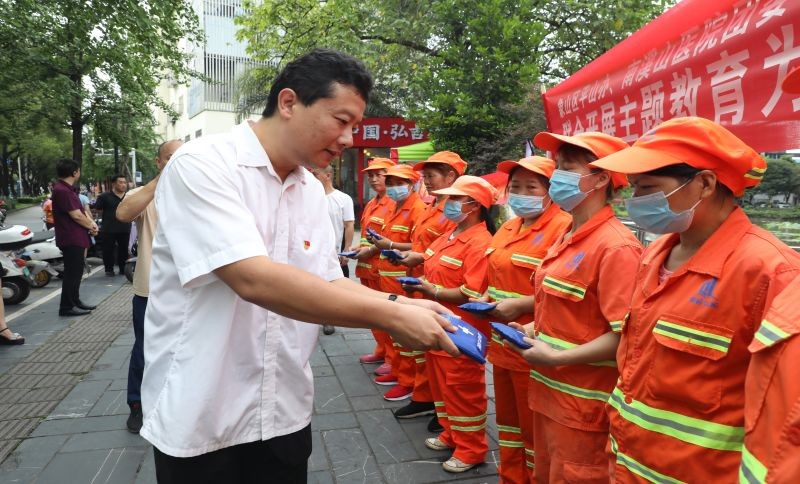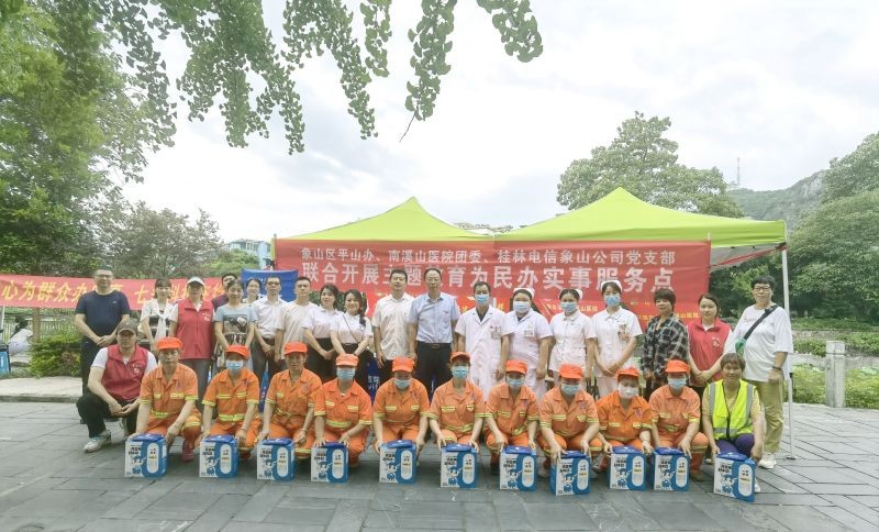 为推进学习贯彻习近平新时代中国特色社会主义思想主题教育走深走实,6月18日,广西壮族自治区南溪山医院团委、桂林电信象山公司党支部等单位联合开展以“为群众办实事”为主题的关爱活动,用心用情关爱辛勤工作在美化城市环境一线的环卫工人。
