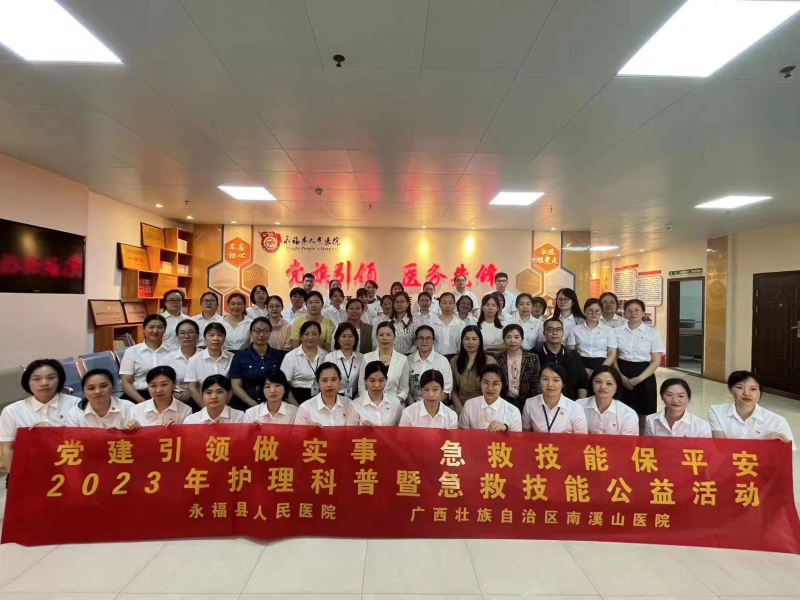 5月26日,广西壮族自治区南溪山医院组织开展的桂林市护理学会重症专业委员会2023年“护理科普活动”暨重症护理进基层走进永福县人民医院和永福县高级中学,通过学术交流、实操演练、重症护理查房、急救知识现场教学等活动,提高基层护理人员的护理专业技能和素养,向学校师生普及急救知识。