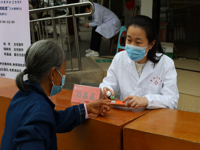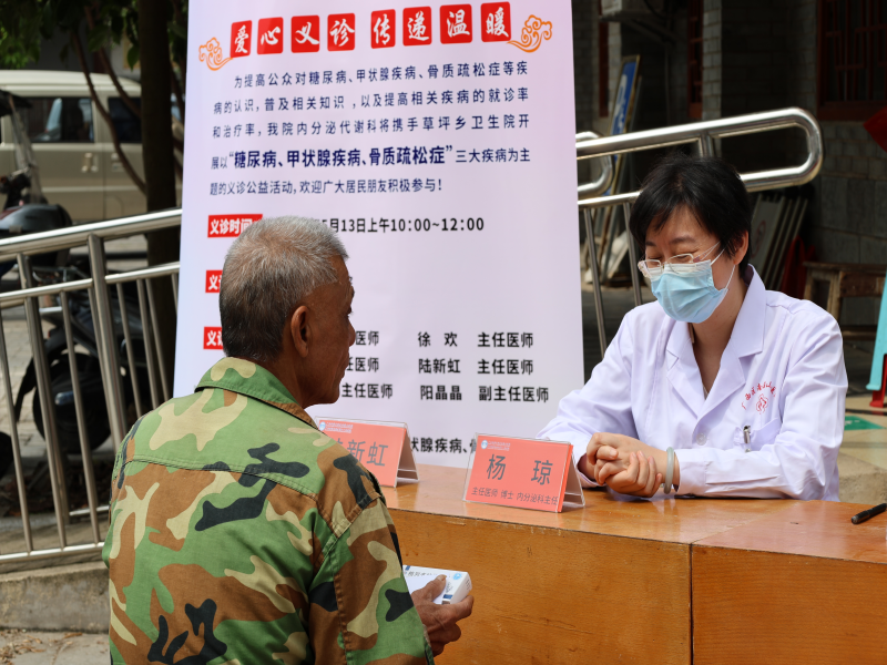 当天一早,草坪卫生院外格外热闹,前来就诊咨询的村民络绎不绝,医护人员耐心地为大家讲解糖尿病、甲状腺疾病、骨质疏松症等疾病的的预防知识和注意事项,并为居民量血压、测血糖,耐心询问其饮食和生活习惯,并为居民答疑解惑,给予对应的疾病预防建议。义诊活动将健康服务送到家门口,村民面对面向医生咨询,解决了他们的一些医疗难题,实现了优质医疗资源下沉,提高了村民们的就医获得感和幸福感。