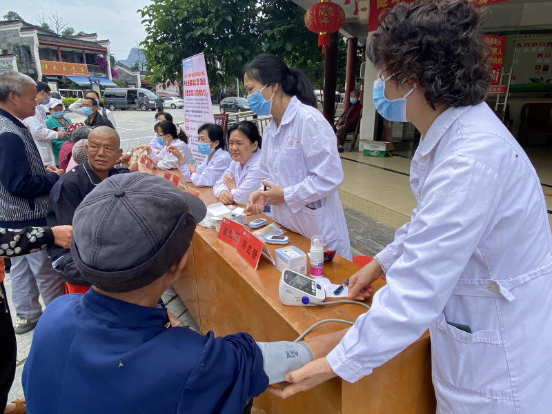 5月13日,自治区南溪山医院内科第三党支部联合雁山区草坪卫生院开展“爱心义诊,传递温暖”志愿义诊活动,让优质医疗离乡村更近。