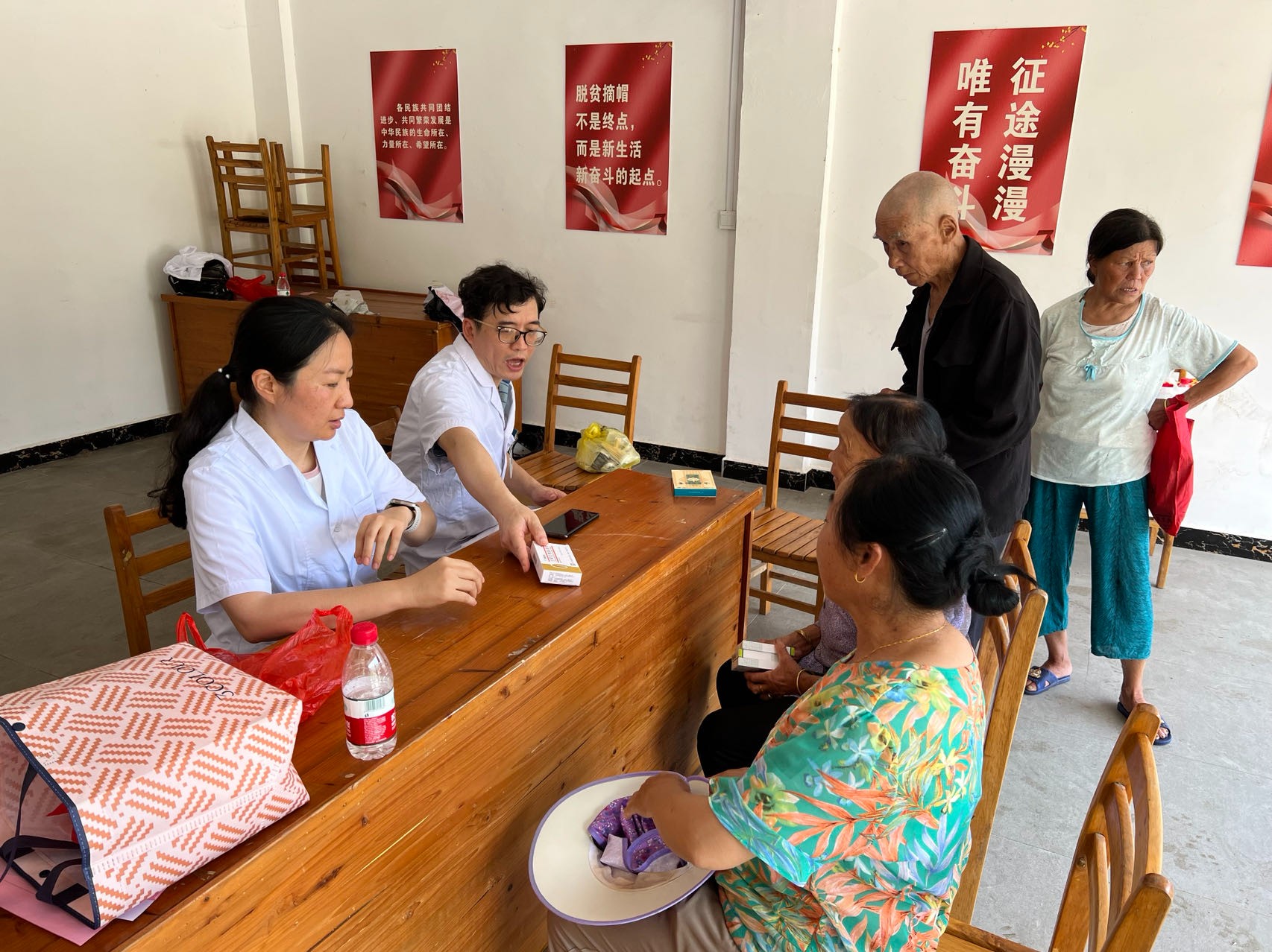 医院专家为当地群众义诊、发放药品