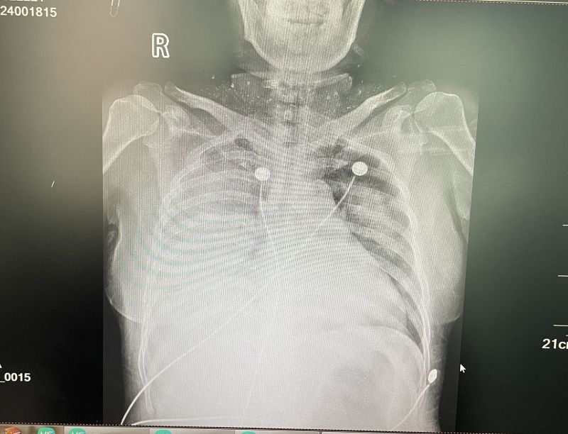 3月23日,今年53岁的莫女士因咳嗽咳痰4天由其他医院转至南溪山医院呼吸与危重症医学科就诊,仅仅过了两天,病情就急转直下,出现严重的低氧血症。在进行气管插管呼吸机辅助呼吸等紧急处理后,莫女士的缺氧症状并无改善,纯氧情况下氧合指数仅仅只有61mmHg,急查床边胸片可见两肺大片炎症改变,俗称“大白肺”,而此时呼吸机已经给到最高参数,如果她的低氧状况再不改善将会引起重要脏器进一步缺氧甚至有生命危险。