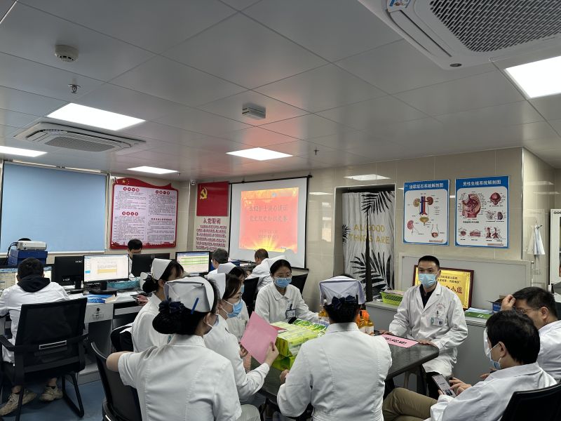 为了庆祝护士节,泌尿外科所在的外科第七党支部组织党员及全体护理人员开展了主题党日活动,与护理团队谈心谈话,进行党史知识竞答,为党员过政治生日。在谈心谈话会上,支部书记廖松柏强调,医护是密不可分的合作关系,没有护理人员的辛勤付出,就不可能有高质量的医疗服务。针对护理同事工作、生活上遇到的困难与问题,支部一直高度关注,也希望大家畅所欲言,坦诚交流。随后,护理人员从自身角度及实际情况提出了工作、生活上遇到的困难,大家各自发表了看法及解决问题的方案,医护团队在交流中增进了同事感情,拓展了工作思路。