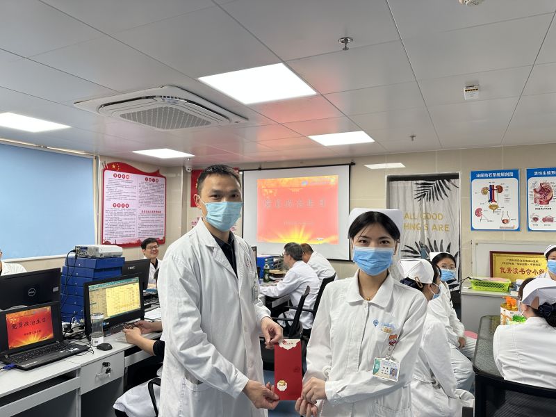 廖松柏表示,谈心谈话活动既是党员集体组织生活的重要部分,也是科室工作一贯的重点内容,通过谈心谈话,可以广泛收集各同事工作、生活中遇到的问题,在这个过程中也可以集思广益,更好的找到解决问题的方法。以赛促学的党史学习教育则有利于提高支部党员思想觉悟,将党建工作与临床工作紧密结合。而通过给党员过政治生日,不仅让党员感受到了党组织的关爱,更是丰富党建形式的有力举措,在庆祝国际护士节之际,医护团队也不忘回顾工作,总结经验,提升服务,为患者群众提供更优质的医疗服务而不断努力。