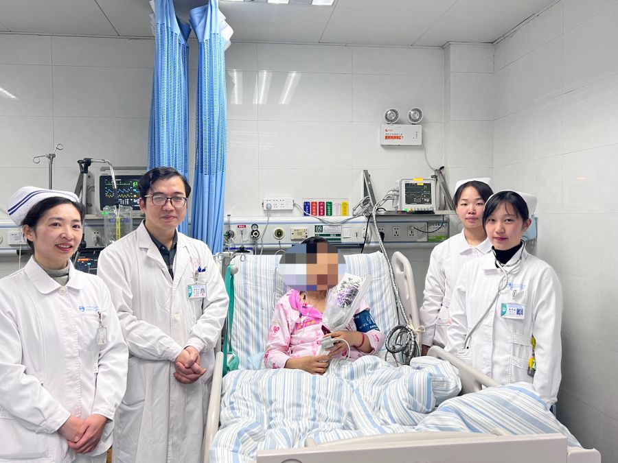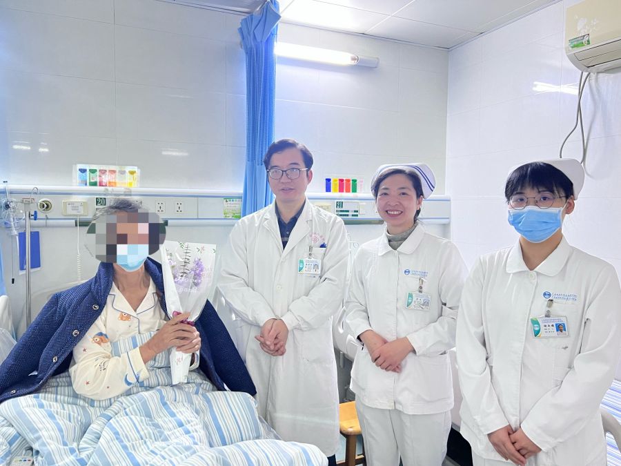胸外科医护人员向女患者送上鲜花