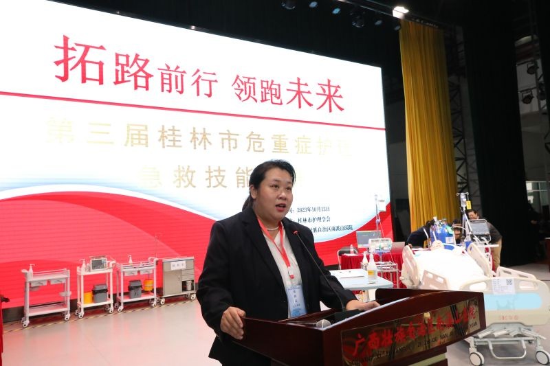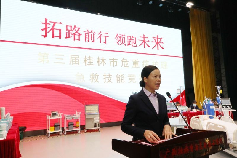 此次竞赛以“拓路前行、领跑未来”为主题,分为市级选手专场和县级选手专场。比赛前,桂林市护理学会重症专业委员会主任委员、自治区南溪山医院护理部副主任黄锦芳在致辞中表示,希望各参赛队员以赛促学,在技能竞赛中磨练真本领,提升护理技能,更好地指导实际工作,为危重症患者提供更高水准的护理服务。