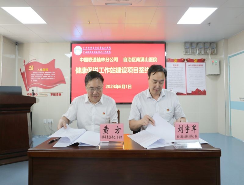 双方签订《广西壮族自治区南溪山医院国际健康管理中心健康促进工作站建设项目合作协议书》