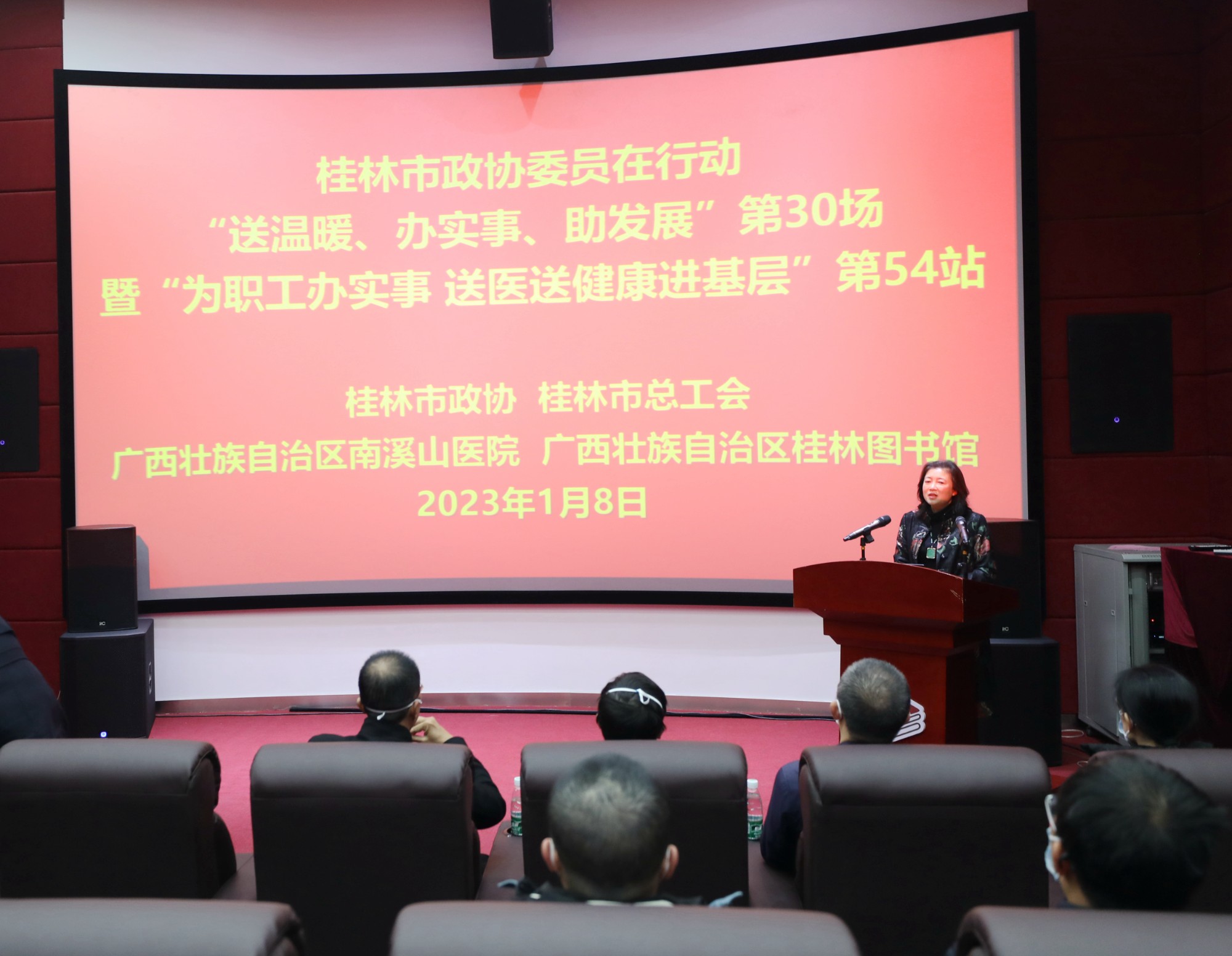 据悉,此次送健康活动是桂林市政协委员在行动——“送温暖、办实事、助发展”第30场,也是桂林市总工会“为职工办实事 送医送健康进基层”第54站。出席活动的桂林市总工会党组成员、副主席莫曦媛高度评价了这一品牌系列活动,她表示,南溪山医院抗疫三年为守护桂林人民健康作出了突出贡献,与广西桂林图书馆联合开展健康讲座向社会普及急需的健康知识更是恰逢其时,不仅教会了广大读者和职工在后疫情时代如何保障自己和家人的健康,也彰显了两家单位作为国家公共事业单位的责任与担当,市总工会将继续关注、支持南溪山医院送健康活动,让桂林更多单位、职工了解、掌握必要健康保健知识,在单位就能享受到大医院的优质服务。