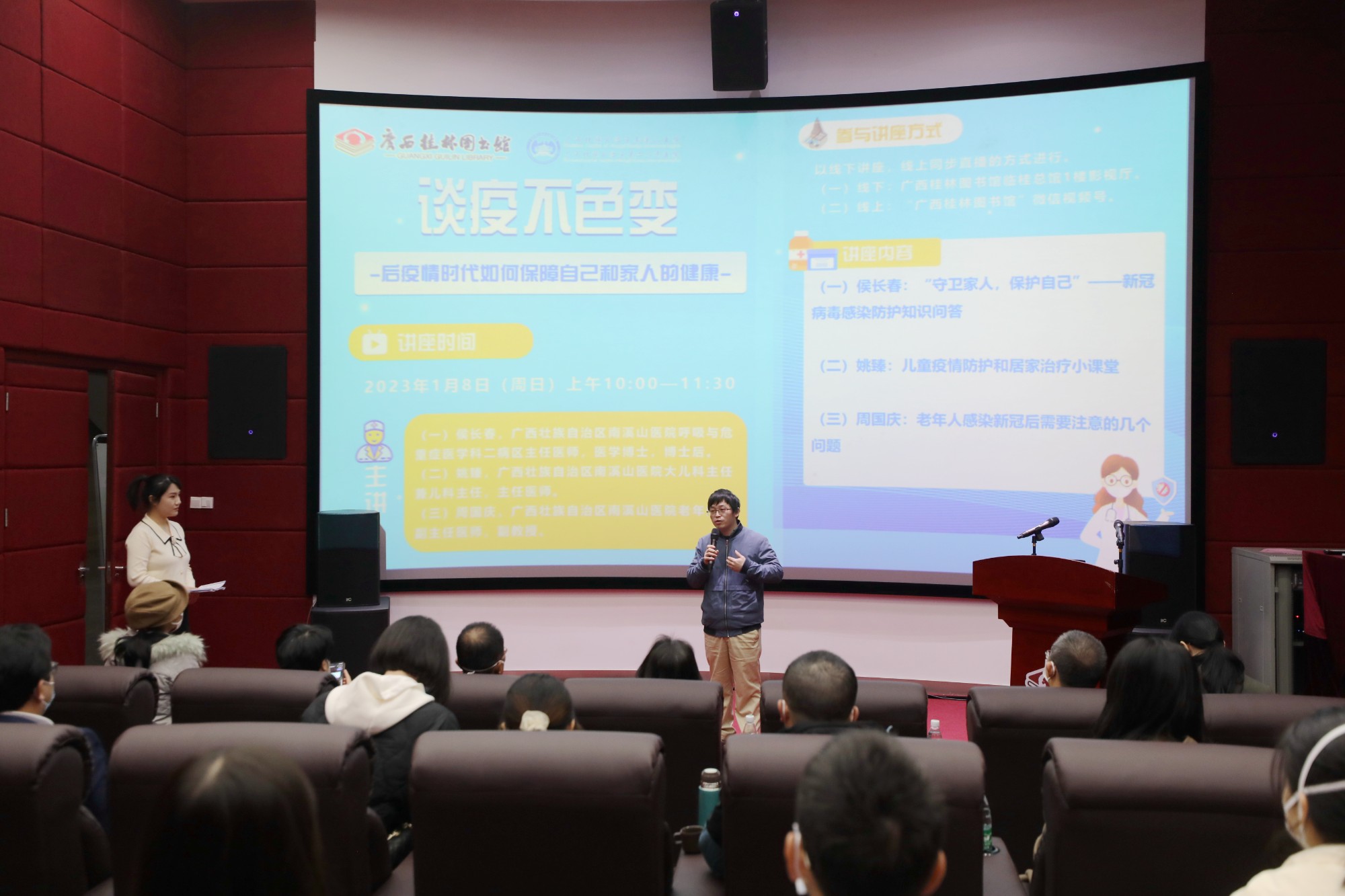 1月8日,应广西桂林图书馆的邀请,广西壮族自治区南溪山医院党委、工会组织该院3名医疗专家走进广西桂林图书馆,通过线上直播、线下分享,不仅为图书馆的职工送去新春健康大礼,更向广大读者、职工普及后疫情时代如何保障自己和家人健康的暖心知识,回应当前社会关切的热点健康问题。