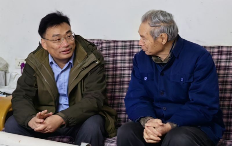 2.杜振宗与贾太昌交流南溪山医院援越历史。医院供图
