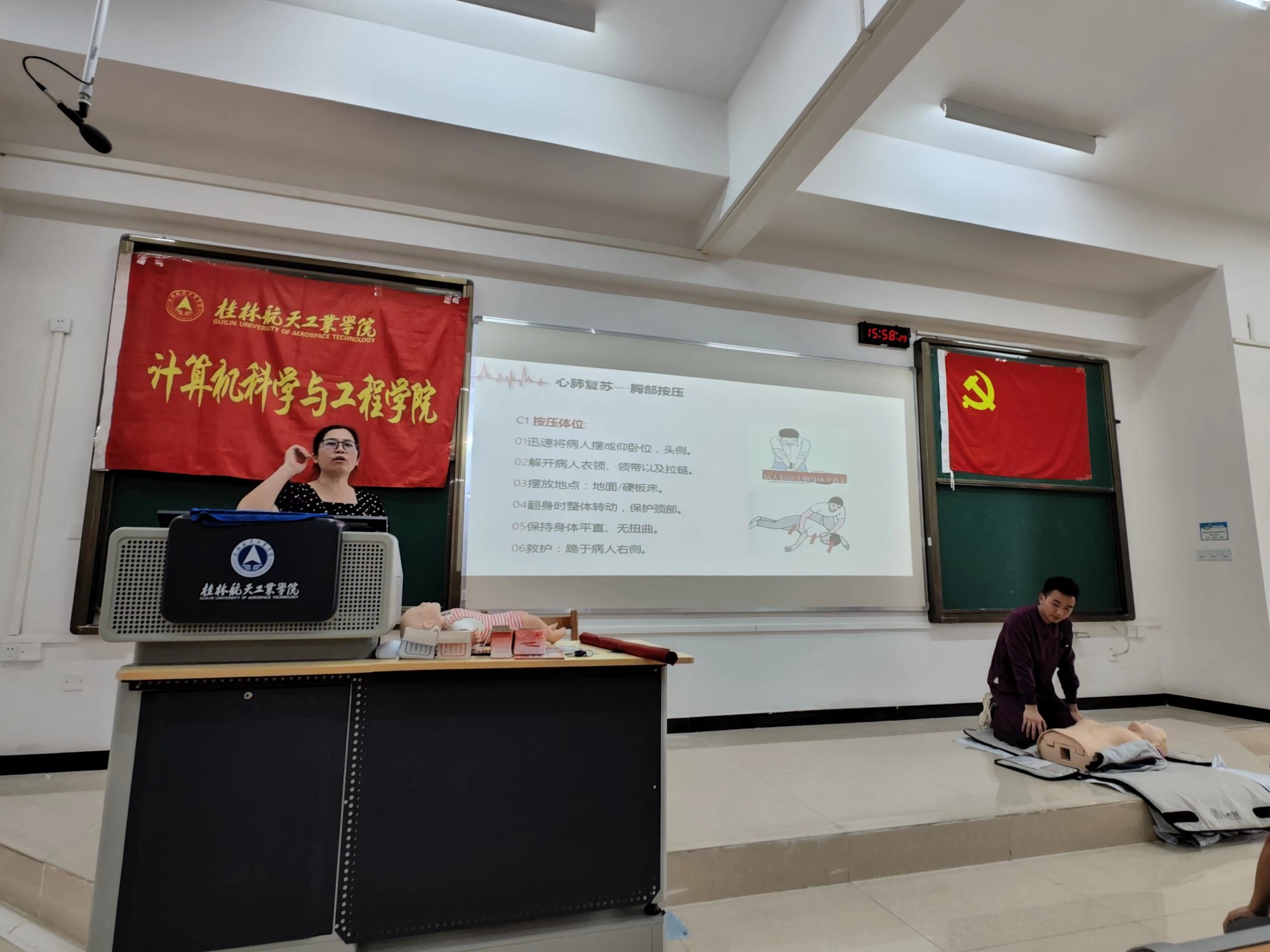 普及应急救护知识是提高青少年学生应急救护技能、增强安全防范意识的重要举措,也是学校健康教育的重要内容。6月11日下午,广西壮族自治区南溪山医院急诊重症第一党支部走进桂林航天工业学院,为同学们上了一堂生动的急救知识培训课。