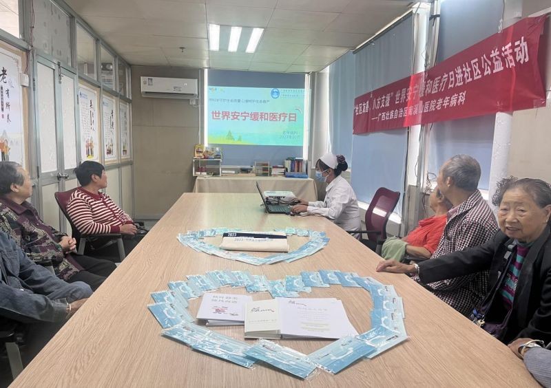 为进一步扩大安宁疗护在群众中的普及度,传递安宁疗护理念,为民众提供全生命周期的健康服务,广西壮族自治区南溪山医院老年病科医护人员开展了包括进社区宣讲和在病区开展患教会等系列安宁疗护宣传活动。