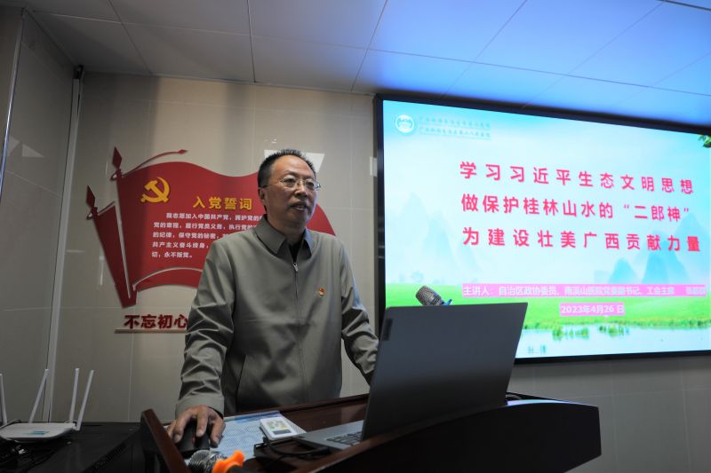 在“漓江保护日”一周年之际,为教育引导医院团员青年敬畏自然、保护自然,自觉做保护漓江、保护环境的宣传者、践行者、守护者,营造爱护环境从我做起的良好社会氛围。4月26日,自治区政协人口资源环境委员会委员、自治区南溪山医院党委副书记张超群,为该院团员青年上了一堂特殊的“环保”团课。
