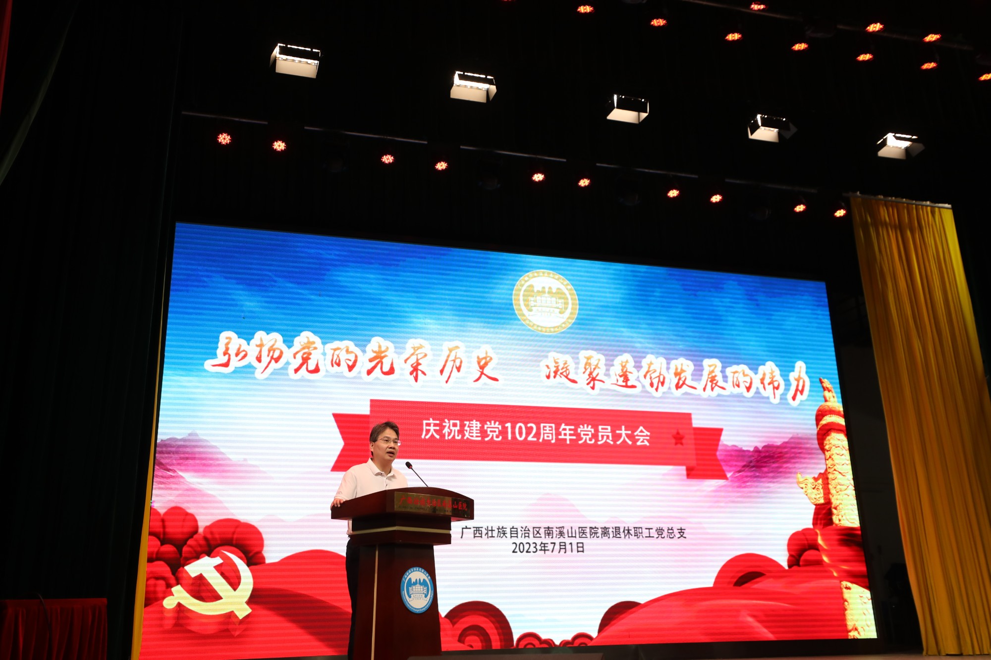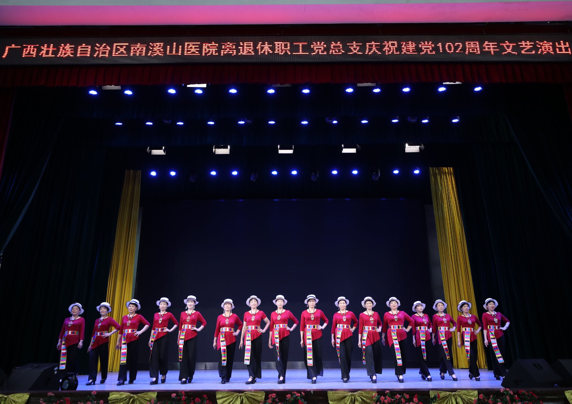 7月1日,广西壮族自治区南溪山医院离退休职工党总支举行庆祝建党102周年党员大会暨“七·一”文艺汇演。老党员医务工作者通过听党课、唱红歌等形式庆祝党的生日。