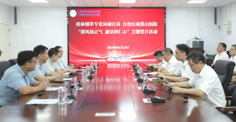 6月26日,广西壮族自治区南溪山医院携手桂林市烟草专卖局城区局举办“清风扬正气 廉韵润仁心”主题党日活动,共同推动清正廉洁的新风正气不断充盈。