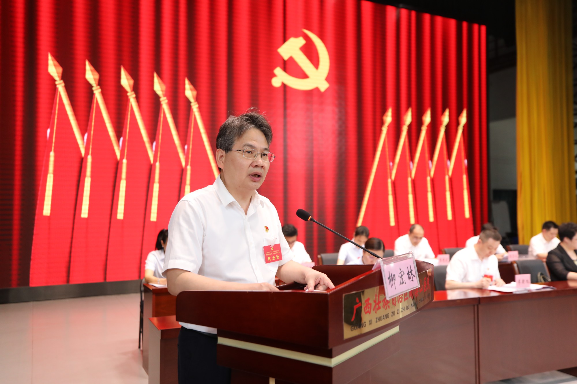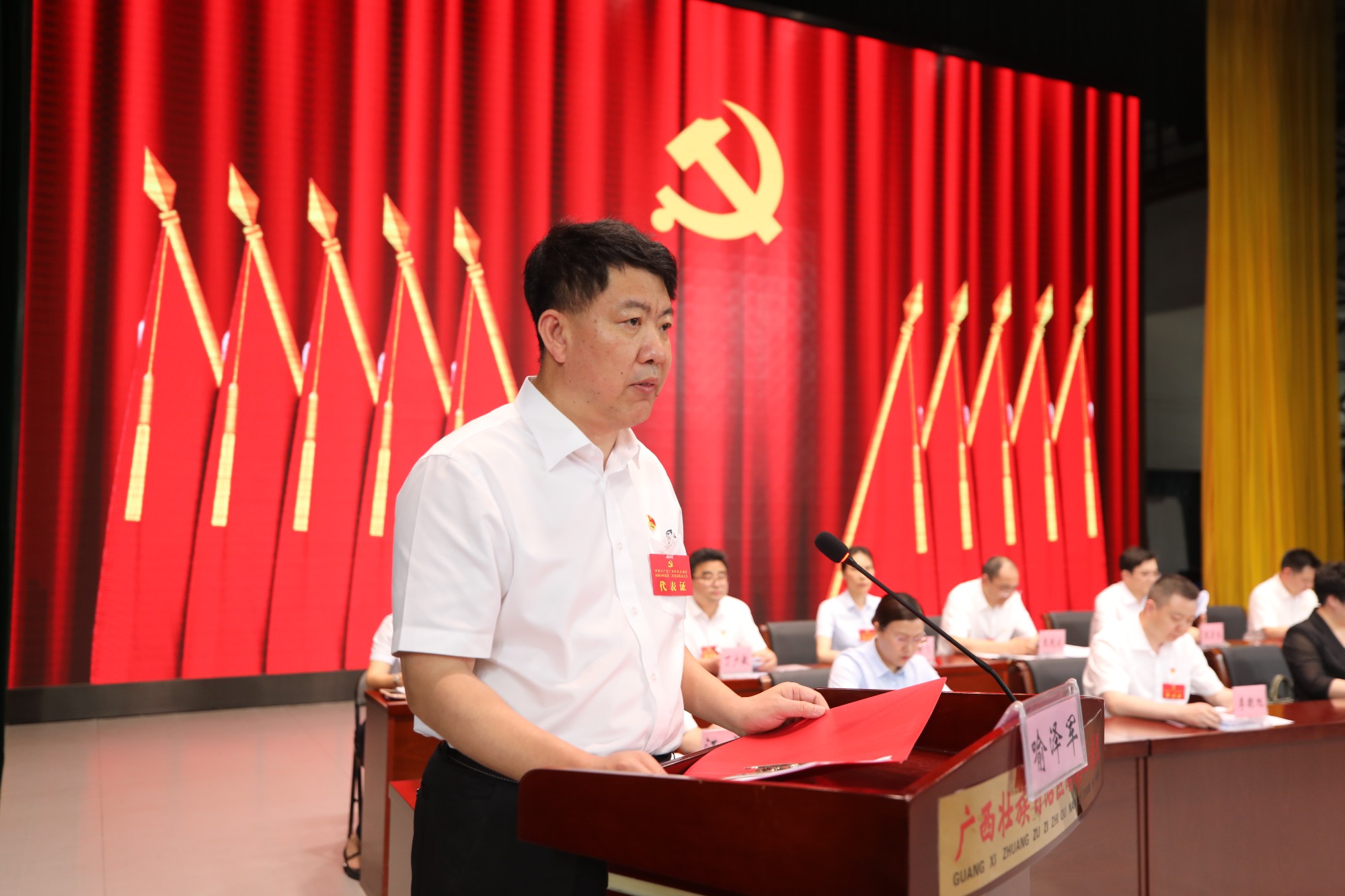▲柳宏林同志代表中共广西壮族自治区南溪山医院第六届委员会作题为《凝心聚力促发展,砥砺奋进谱新篇,为建设桂北地区医疗服务中心而努力奋斗》的工作报告