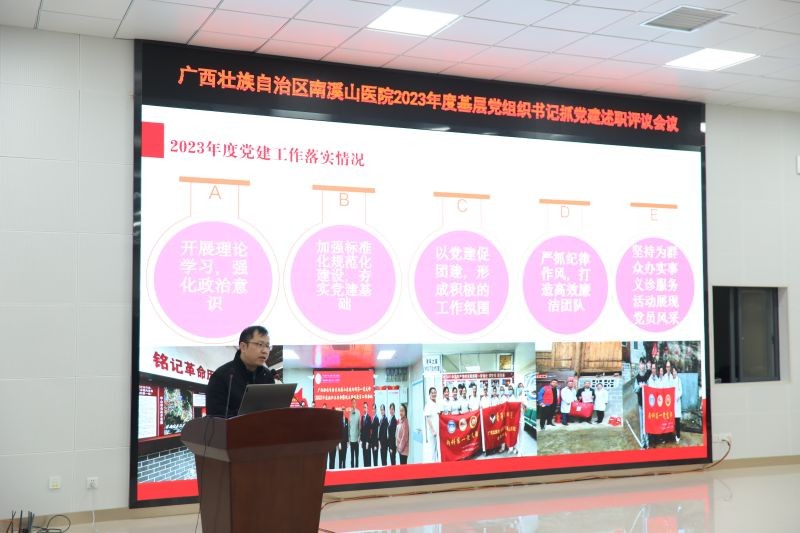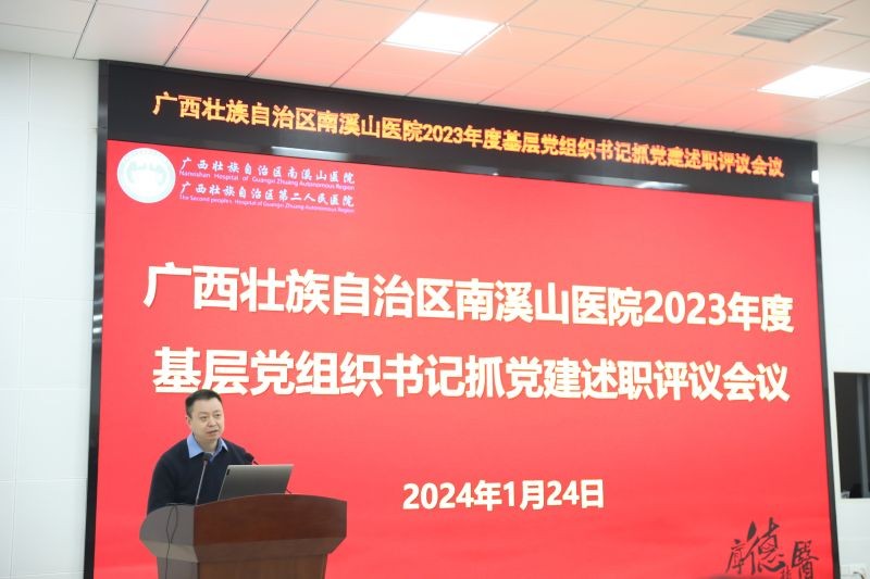 为持续推进“五基三化”提升年行动任务落地落细,1月24日,中共广西壮族自治区南溪山医院委员会召开了2023年度基层党组织书记抓党建述职评议工作会议,全院59个党支部(总支)逐个展示了所辖科室党建引领业务发展工作成效,在互学互鉴中亮成效、晒问题、比实绩、强服务。会议认真总结了2023年医院党建工作成效,全面部署2024年党的建设及党风廉政建设各项工作。