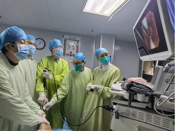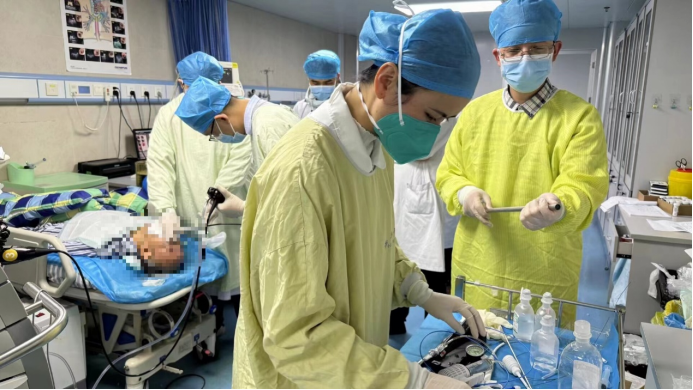 患者转至南溪山医院就诊后,科主任屈东明博士带领团队立即组织科室展开讨论,与患者家属充分沟通后,决定为患者植入沙漏状硅酮支架。此项技术已在呼吸学科开展多年,是南溪山医院呼吸系统的特色诊疗技术,手术时间短,患者痛苦少,成效立竿见影,在业内广受好评。为顺利保障手术,呼吸与危重症医学科二病区介入团队术前仔细评估和研判病情,做好各项应急预案。他们放弃中午休息时间,在麻醉科和内镜中心等医护团队的协助下,成功植入支架。麻醉复苏后,患者气促完全缓解,可下床自由活动,美美睡了一觉。