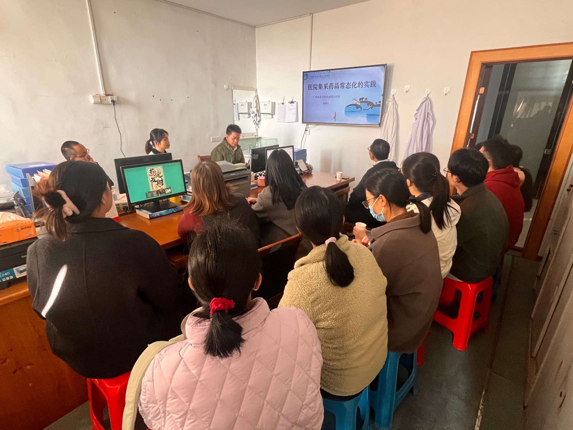本次活动以“党建联学聚合力,药学交融启新程”为主线,聚焦新时期医院药学服务转型与精细化管理。支部书记赵海清围绕医院集采药品常态化实践进行了专题授课。随后,双方通过座谈研讨、实地观摩与专题分享等多种形式,就合理用药、集采药品管理、药事质控、智慧药学建设等关键议题展开深入交流,进一步强化理论武装,凝聚了以高质量党建引领药学服务创新发展的广泛共识。