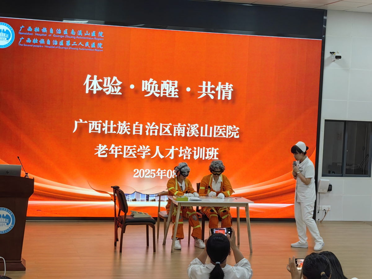 近日,由广西壮族自治区南溪山医院承办的2025年广西老年医学人才培训班开展了系列别开生面的培训课程。课程主要以"老年综合评估"为核心主题,通过理论授课与实践体验相结合的创新模式,为来自全区各地的老年医学领域学员搭建了深度赋能的学习平台。