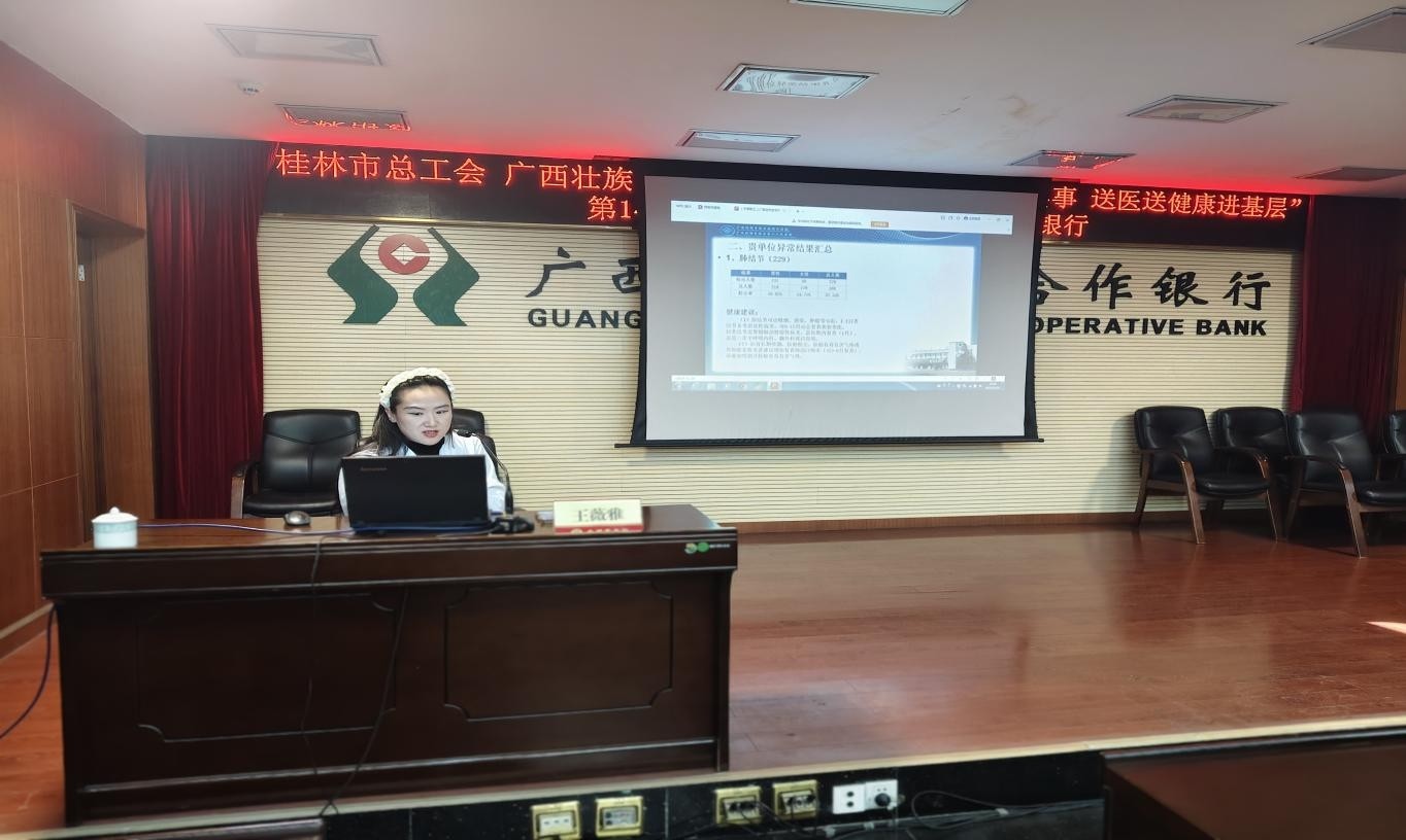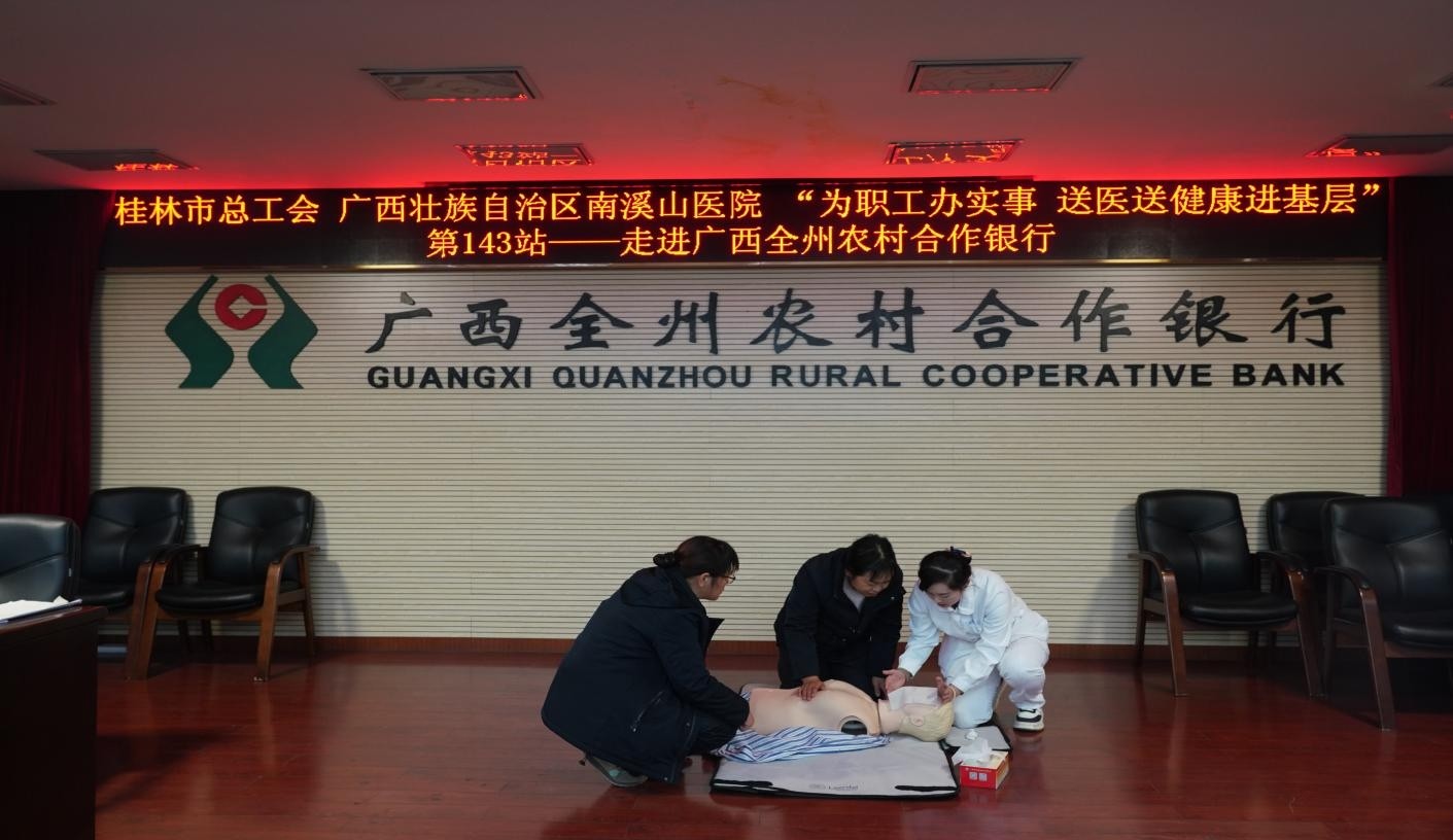 12月18日自治区南溪山医院医技第八党支部及工会联合全州农合行机关第一党支部在全州县开展了健康知识讲座、团体报告解读、急救知识讲座、心肺复苏实操等活动。这也是桂林市总工会 广西壮族自治区南溪山医院“为职工办实事 送医送健康进基层”活动第143站---走进广西全州农村合作银行。