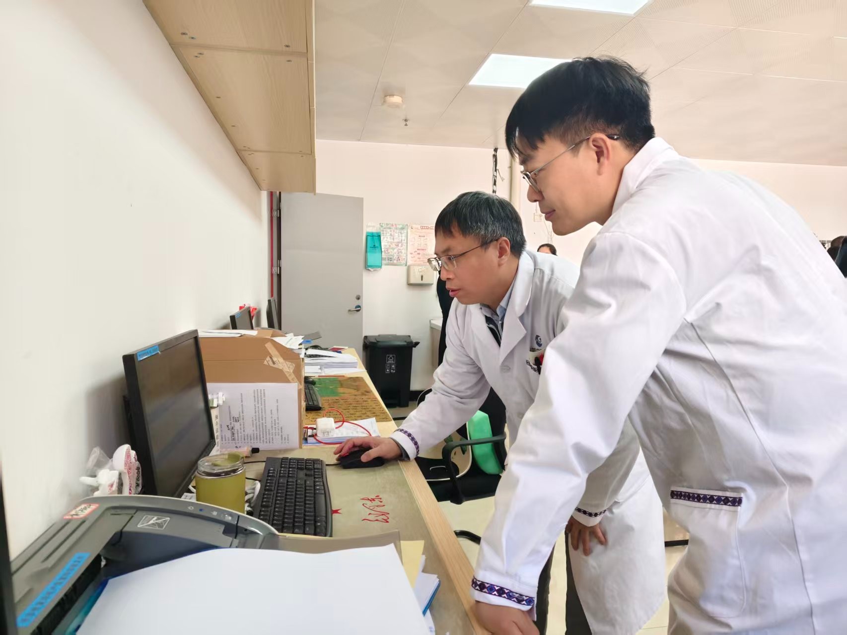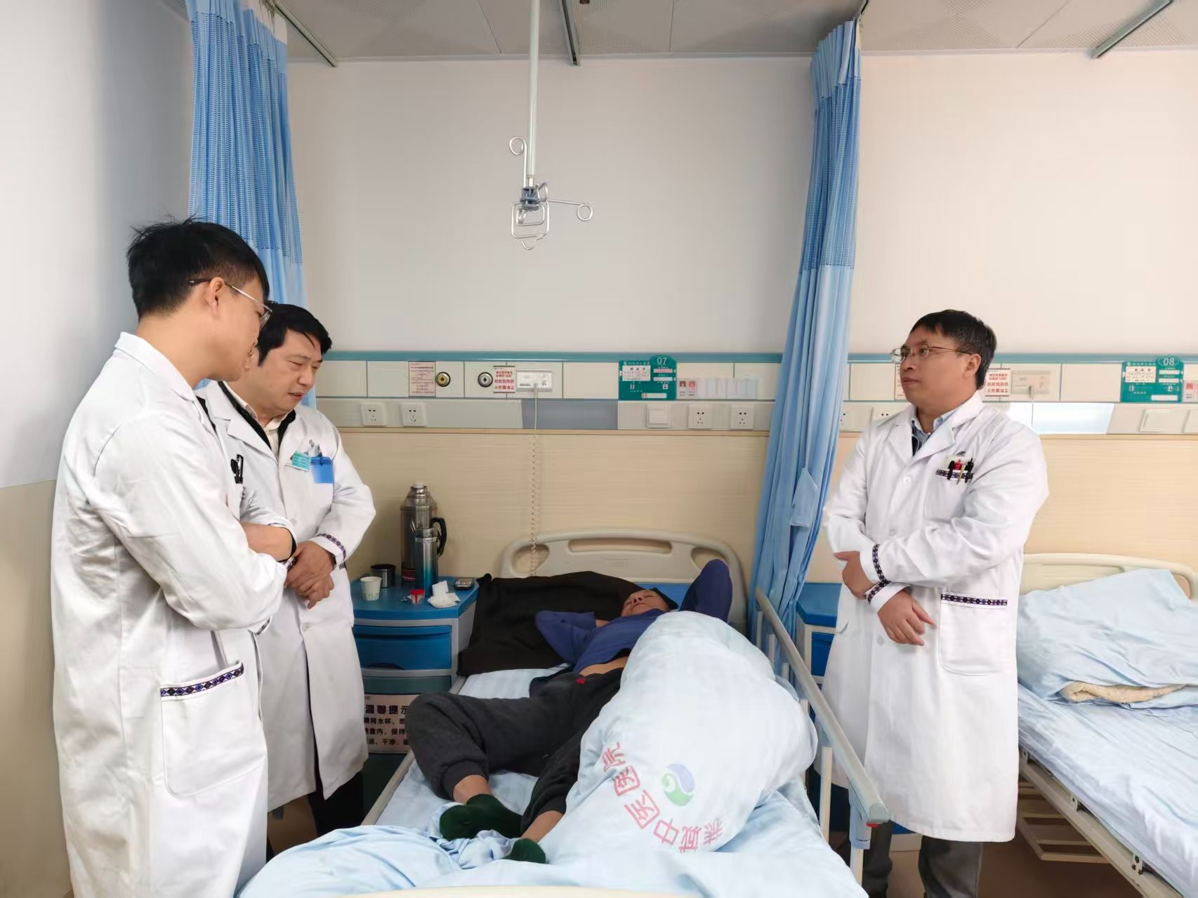 支部党员一到恭城瑶族自治县中医医院,便深入骨科病房开展业务查房,细致评估患者病情、梳理病历资料,围绕脊柱外科疑难病例的诊疗思路,与当地医务人员展开深入交流,分享脊柱微创治疗等技术经验,并为复杂病例制定个性化治疗方案。