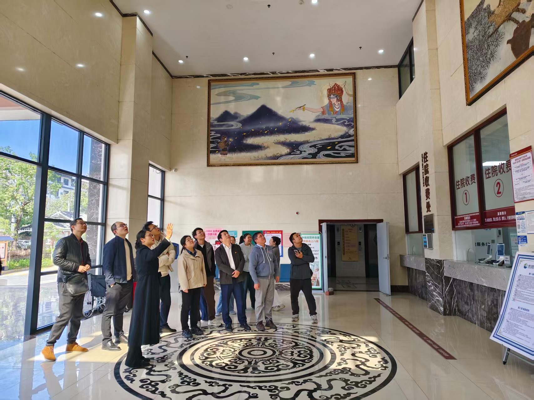 业务交流结束后,支部党员参观了恭城中医院特色药园,了解当地药材种植与中医药临床应用情况。随后,大家驻足孙思邈主题文化墙前,认真学习“大医精诚”的医德医风,品读“精于医术、诚于医德”的精神内涵。党员们结合临床工作实际,交流“以患者为中心”的服务体会,深刻感悟中医药文化中“医者仁心”的传承脉络,进一步坚定了立足本职、践行医者初心使命的信念。
