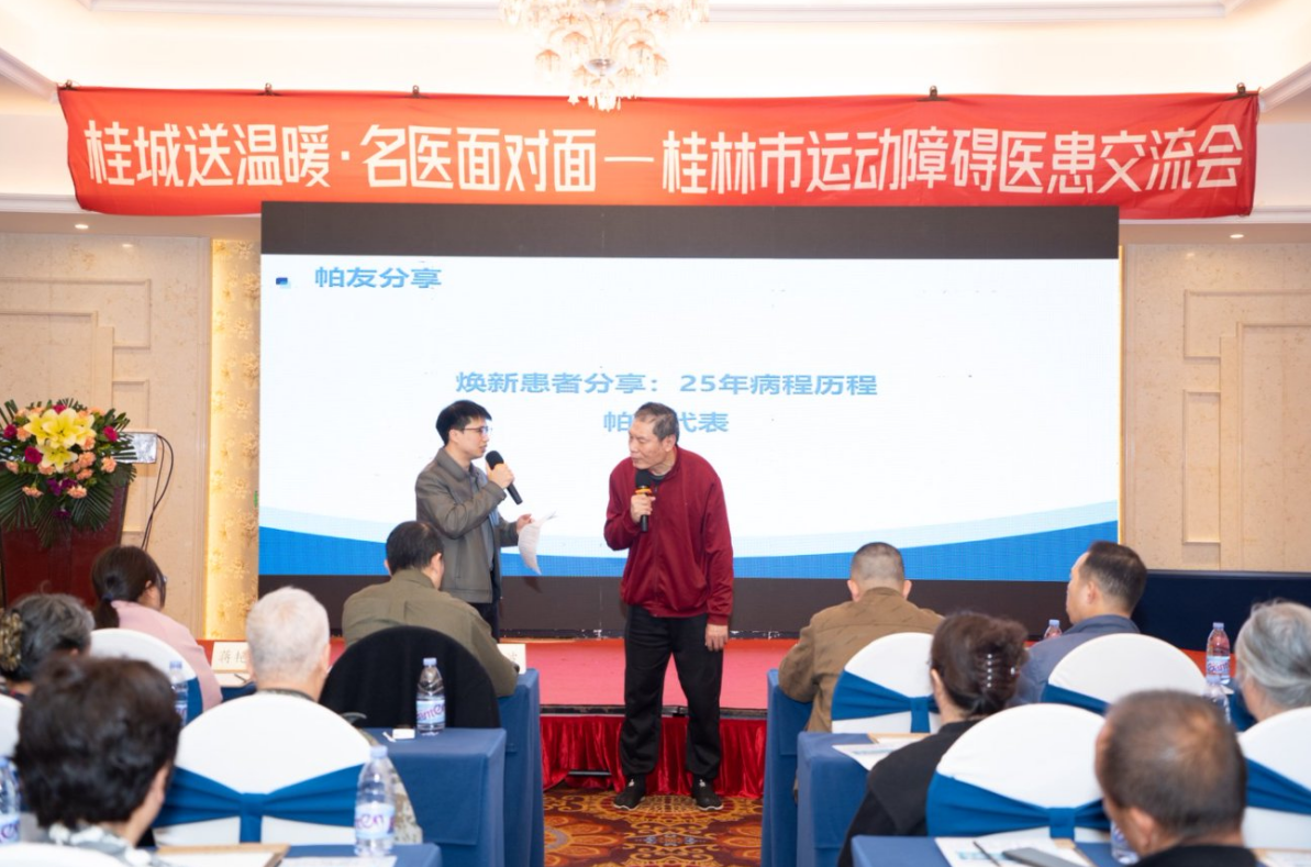 桂林市中医医院康复专家何健主任最后主讲《帕金森病的居家康复训练》,讲解康复原理并现场示范了一系列居家康复动作与技巧。他强调“康复不在医院,而在每一天的生活中”,让康复训练更贴近实际生活。