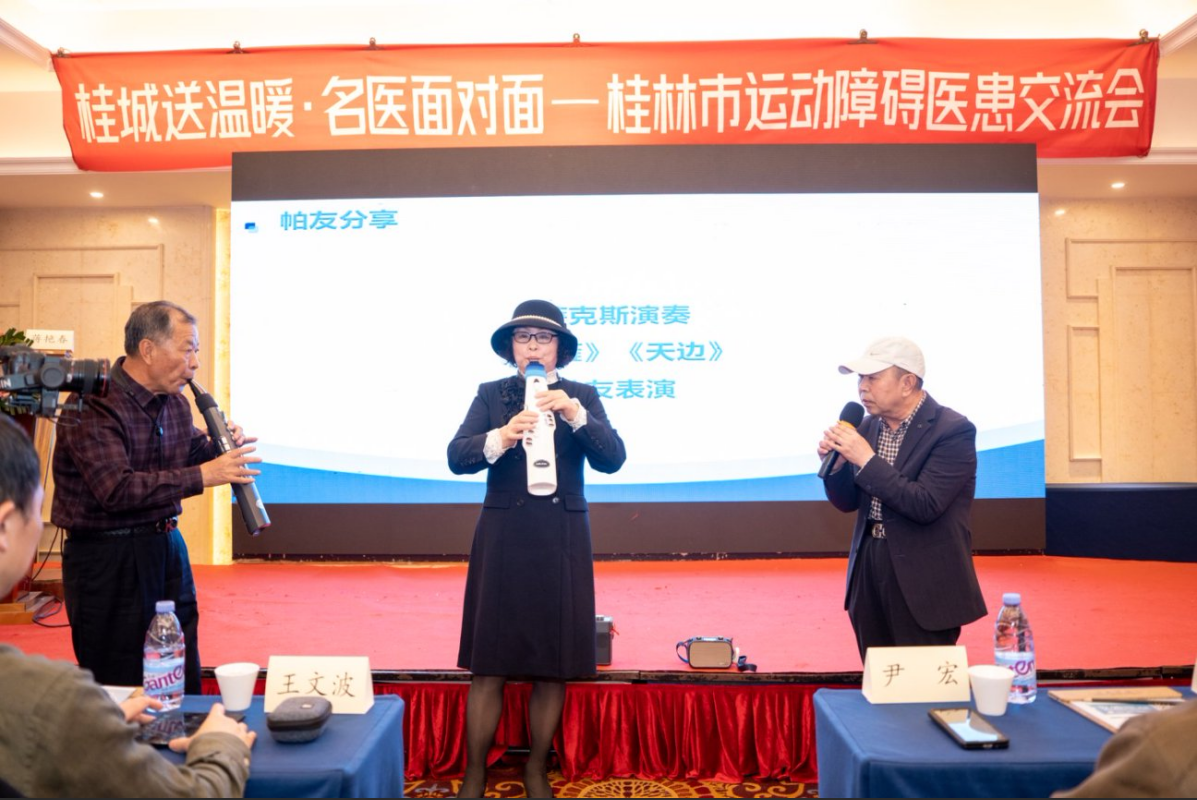 随后,一个由患者家人和朋友组成的演奏团表演了《鸿雁》《天边》等曲目。患者在萨克斯伴奏中演唱,展现了术后的生活质量。表演结束后他分享道:“DBS手术和持续康复让我能够重新拿起话筒、吹奏萨克斯,继续用音乐表达自己。”这些真实的分享让诊疗知识更加具体可感,呈现出医学与生活的交融。