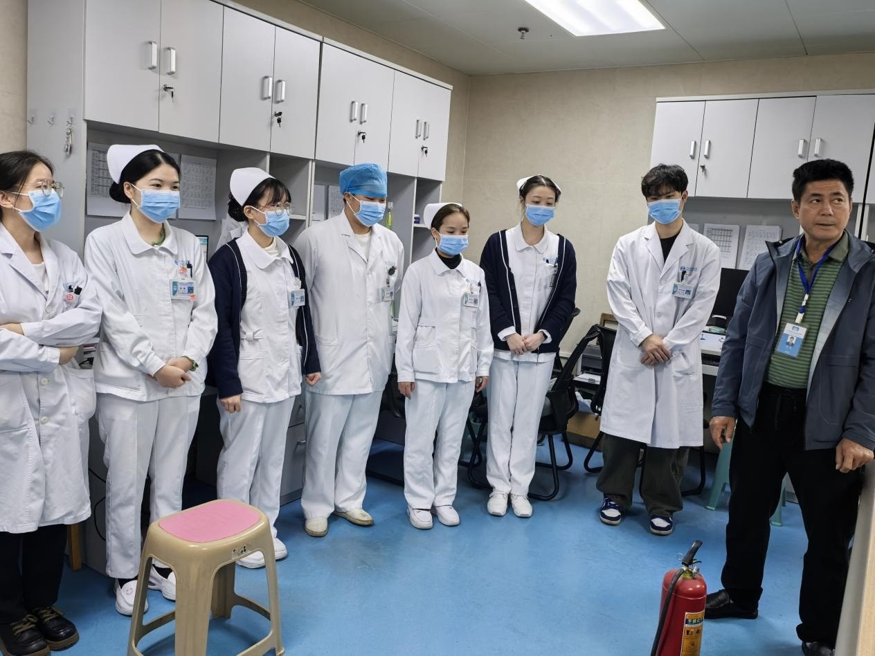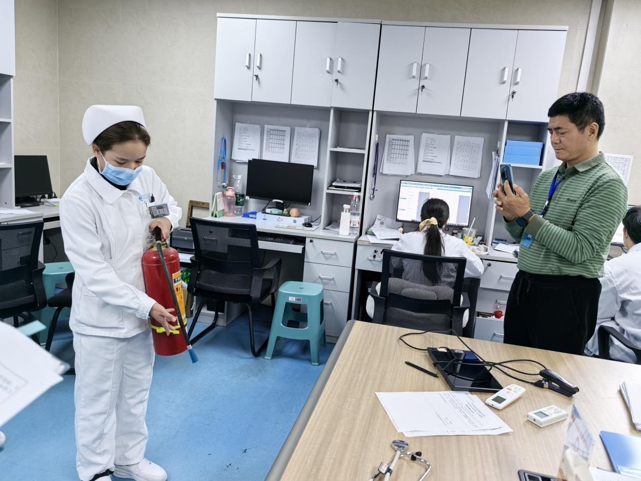 为进一步夯实临床科室消防安全基础,提升医护人员应急处置能力,近日,广西壮族自治区南溪山医院保卫科组织专业培训团队,赴呼吸与危重症医学科三病区开展灭火器使用专项培训及实操考核,科室全体医护人员积极参与,圆满完成培训任务。