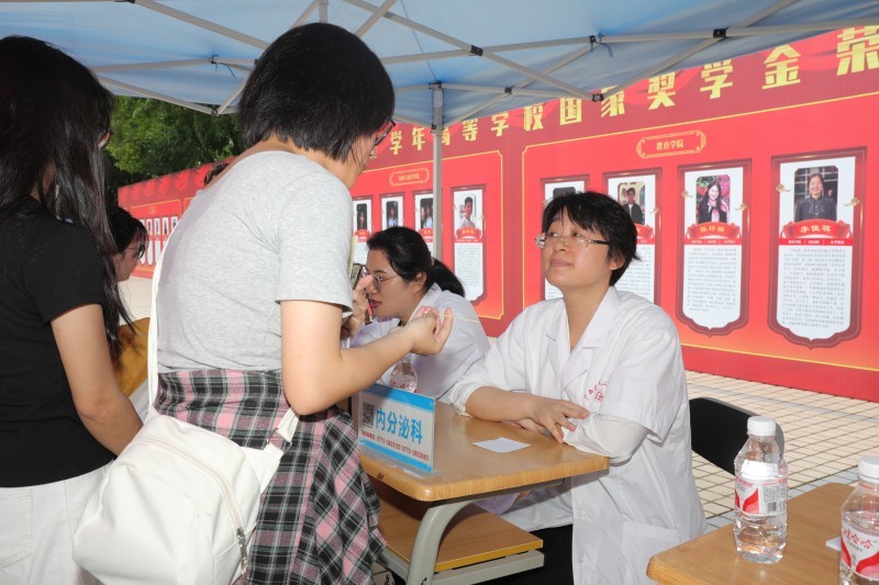义诊活动在乐善广场同步开展,南溪山医院的专家团队为师生提供内分泌科、妇产科、皮肤科、中医科、眼科、骨科、医学影像科等疾病的问诊和健康咨询服务。现场还设置了血压、血糖检测点,师生们有序排队,向专家咨询健康问题。专家们耐心解答,并给出个性化的健康建议,受到师生的一致好评。