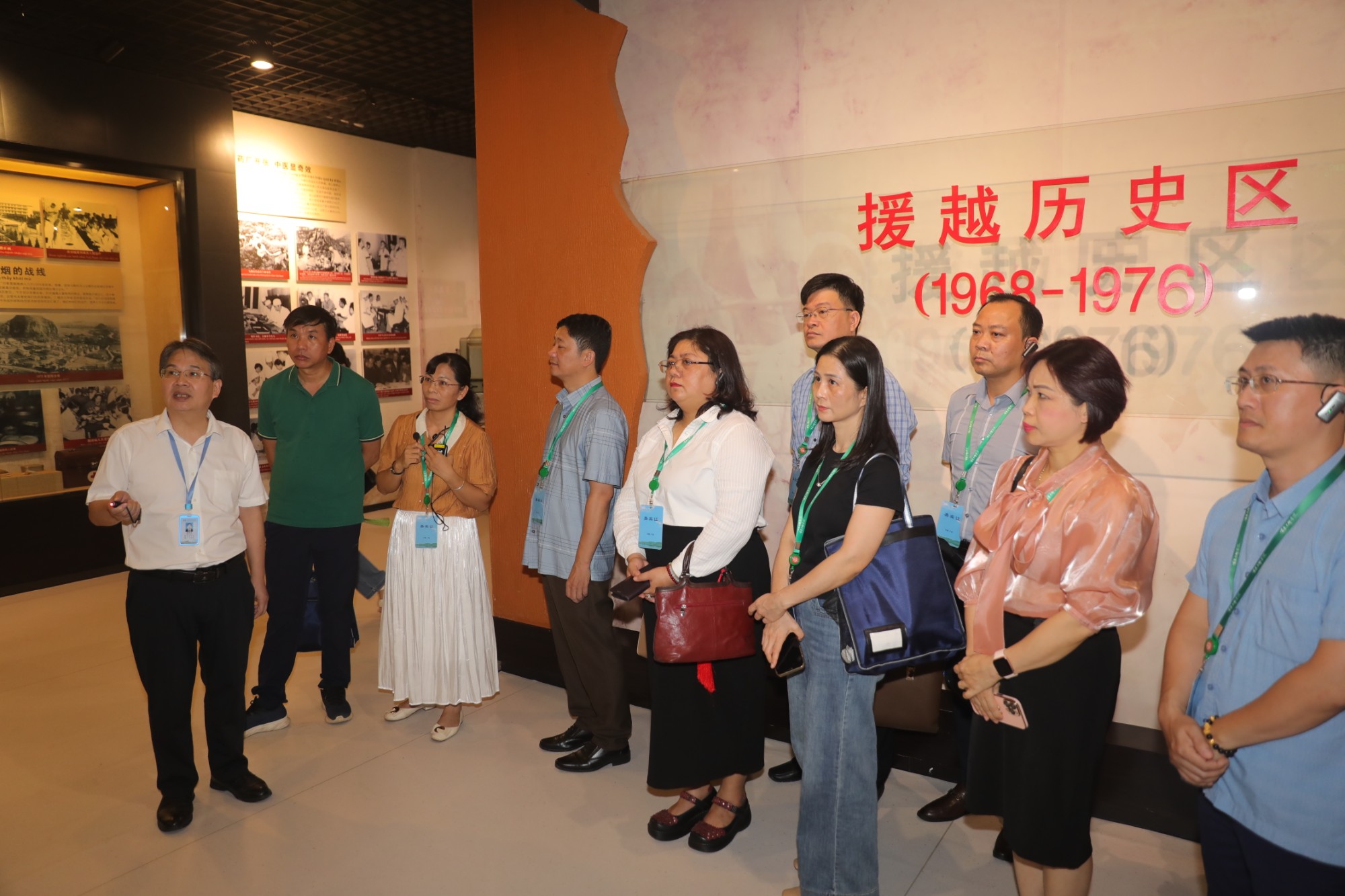 此次到访的越南代表团成员,涵盖了广宁、谅山、高平、宣光四个边境省份的领导干部,考察期间,在南溪山医院党委书记柳宏林陪同下,参观了医院院史陈列馆及大礼堂。在院史馆内,柳宏林书记讲述了医院特殊而光荣的历史。1969年至1975年期间,南溪山医院作为中国唯一一所专门收治越南伤病员的后方国际医院,曾救治了数千名越南伤病员,书写了中越两国人民同舟共济、守望相助的感人篇章。柳宏林表示,9月2日下午,在越南社会主义共和国建国80周年庆典活动上,自治区南溪山医院获越南授予“友谊勋章”,这是越南对自治区南溪山医院援越历史贡献及在中越两国人文、卫生交流合作工作的高度肯定。