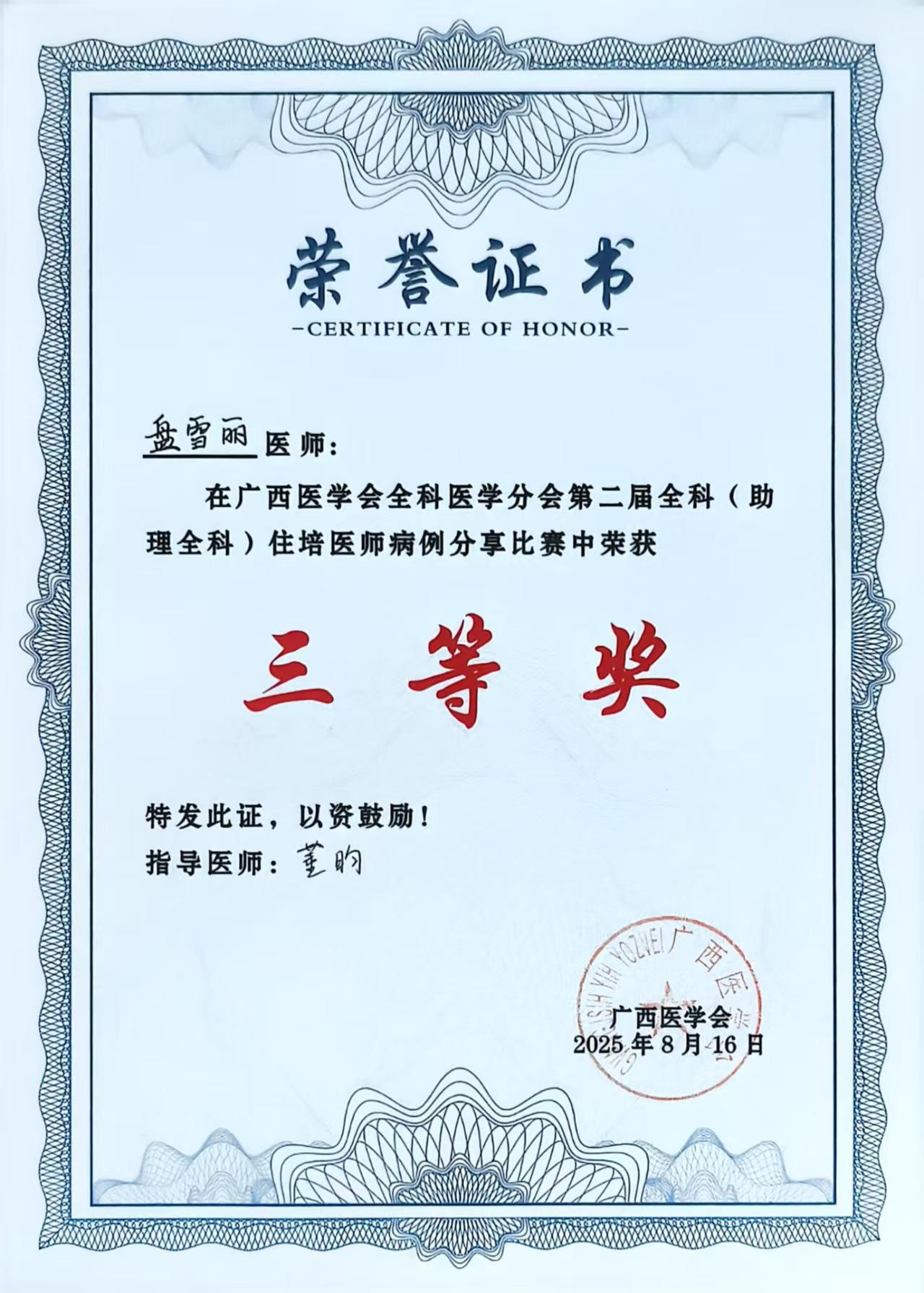 “能站在省级赛事的平台上展示自己,本身就是最珍贵的成长礼物。” 赛后,盘雪丽难掩激动,“从确定参赛方向到最终站上赛场,每一步都离不开医院提供的资源支持,离不开科室团队的反复指导。赛场上的每一句话、每一个观点,都是对平时临床积累与学习成果的检验 —— 这份经历带来的收获,比三等奖的荣誉更让我受益。”