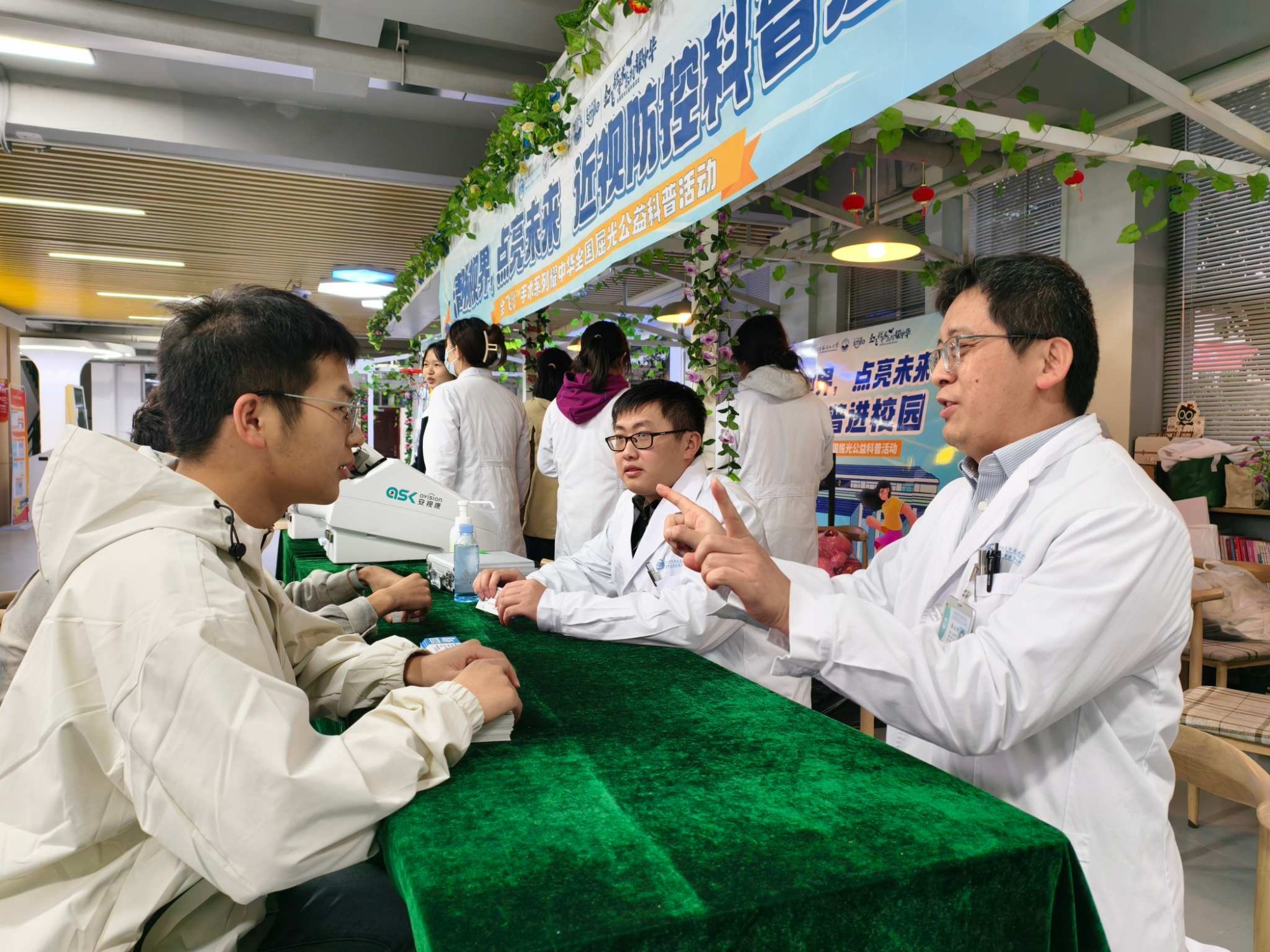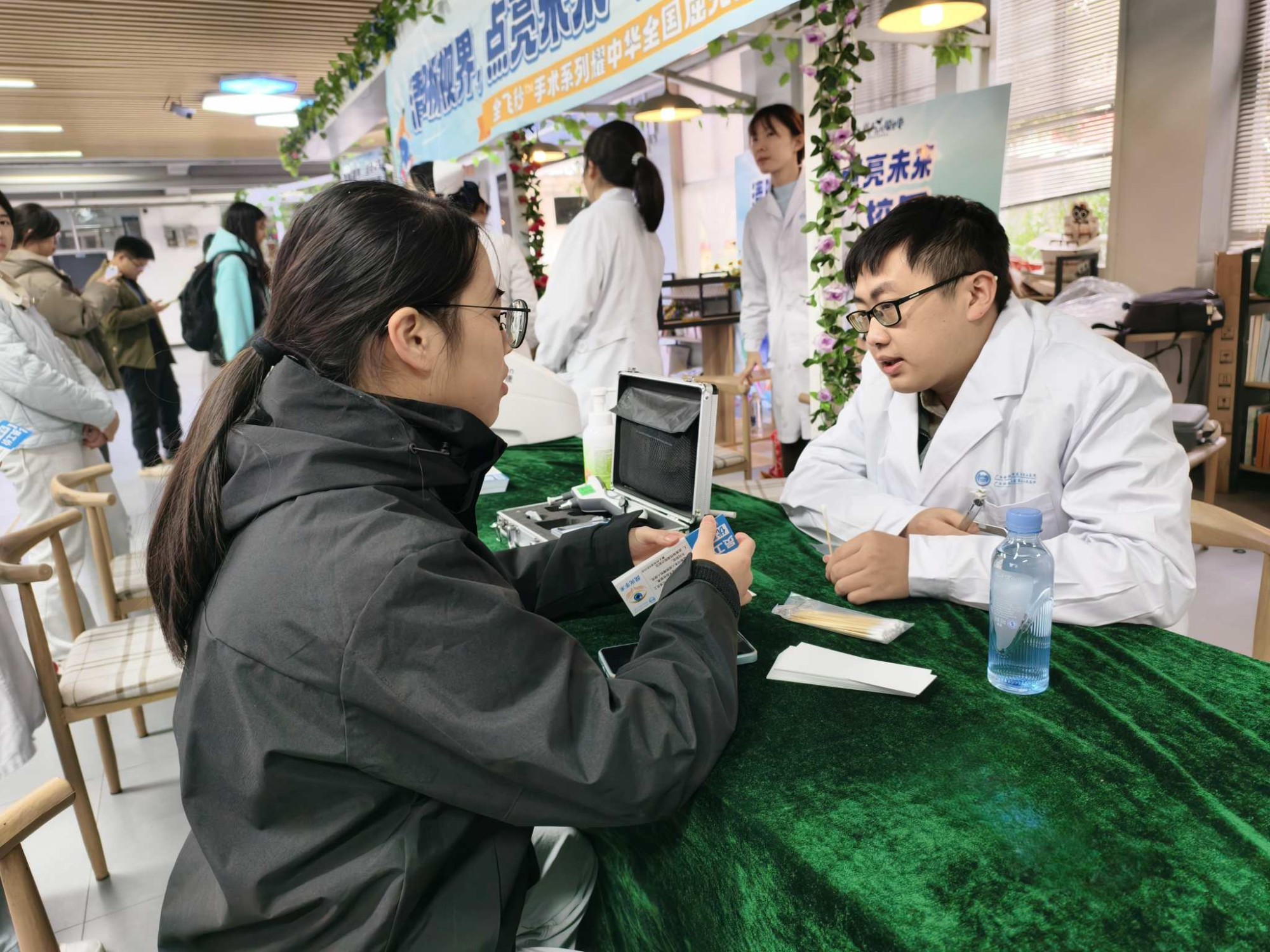 活动当天,南溪山医院眼科专家团队在雁山校区明园“一站式”学生社区大厅设立了义诊服务点,分两个时段贴心进行:中午11:30至14:00,以及傍晚17:30至19:00,充分覆盖了师生的课余时间。