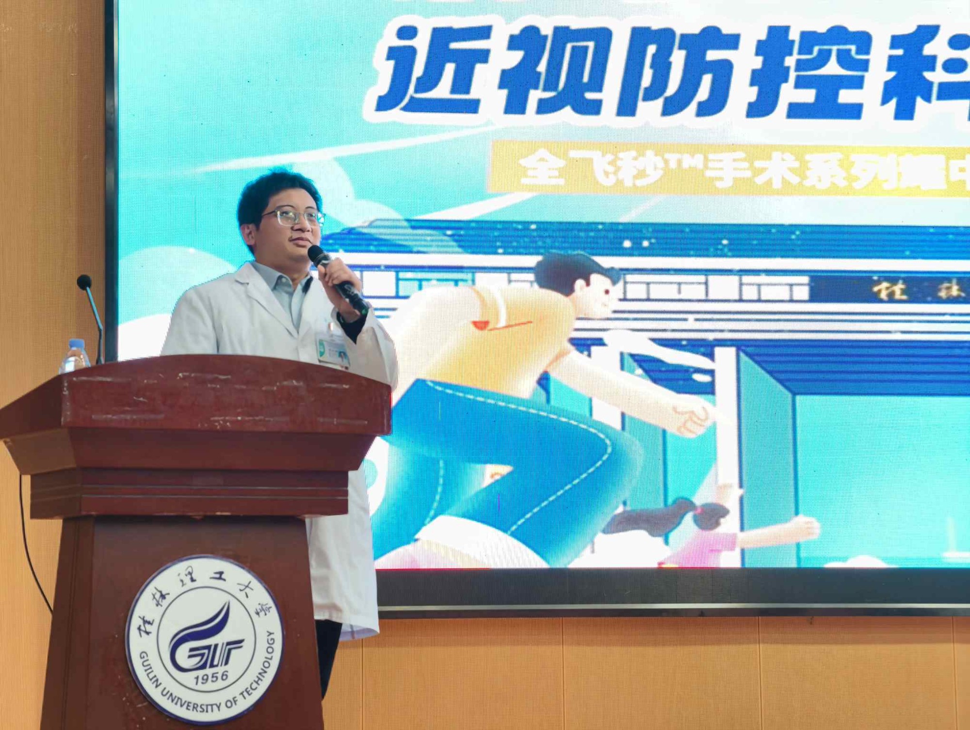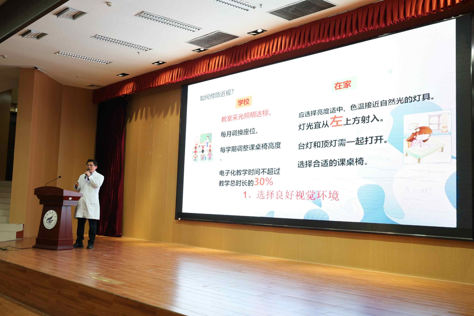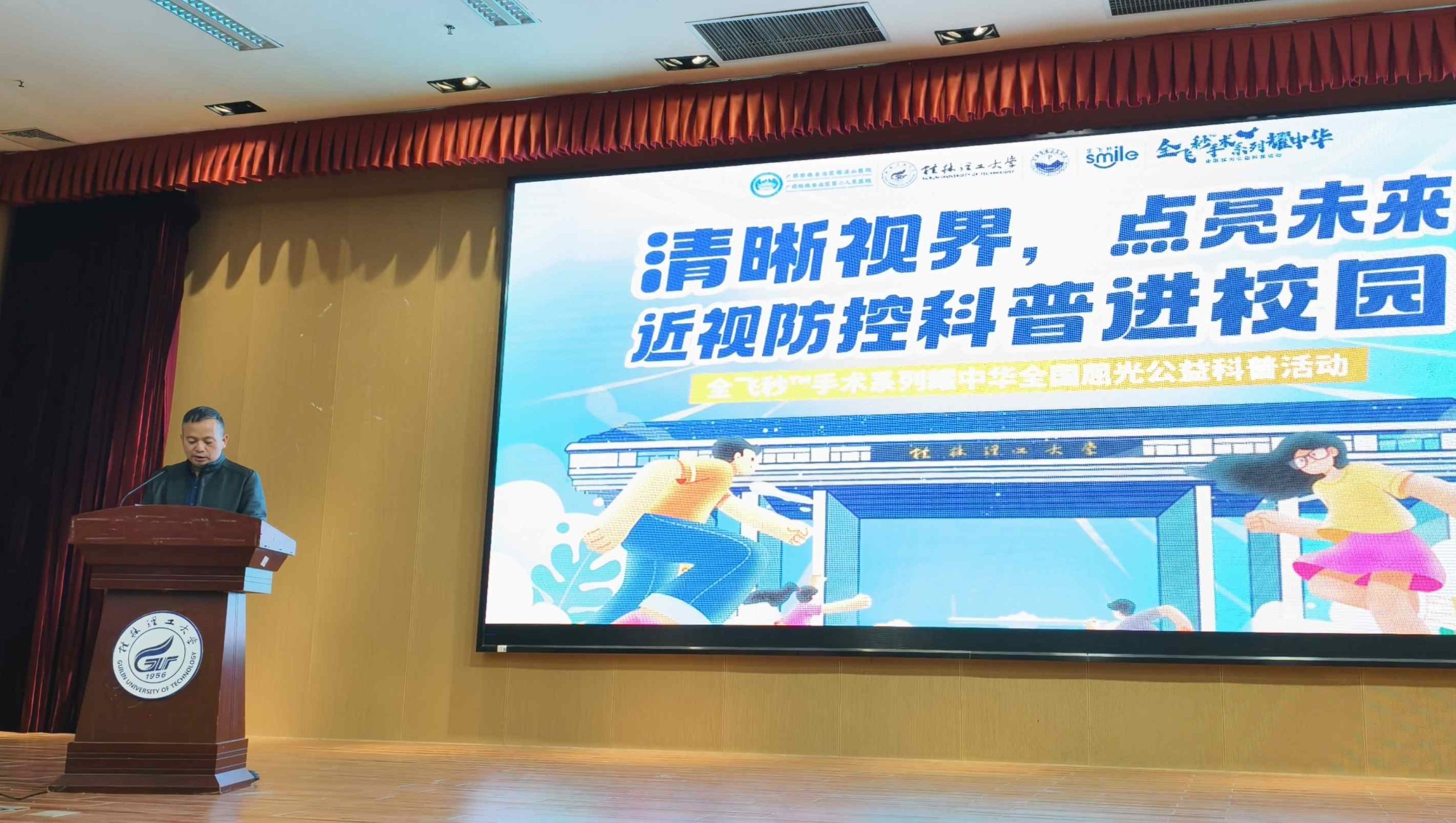 当晚19:00,本次活动的重头戏——近视防控科普讲座在桂林理工大学雁山校区图书馆报告厅准时开讲。