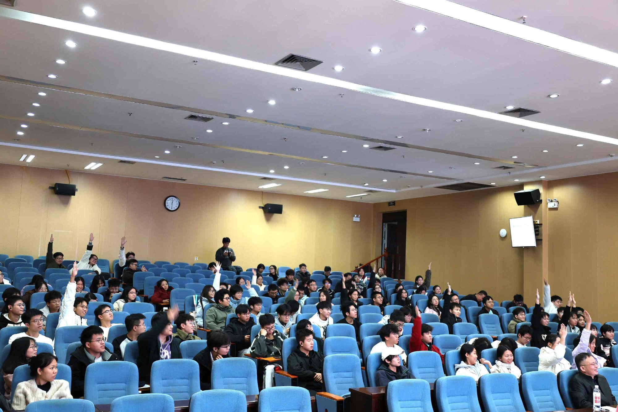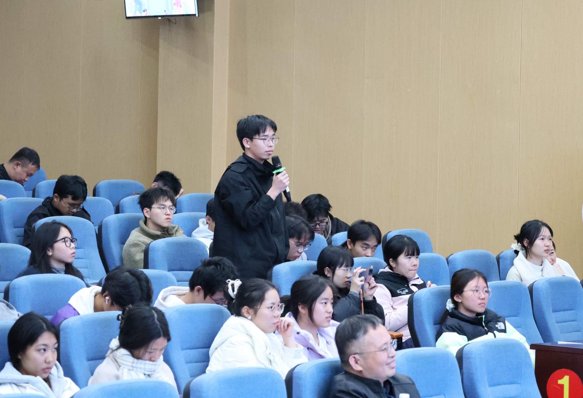 随后,南溪山医院眼科副主任张文彬为师生们带来了《近视矫正科普》 的精彩分享。张主任用通俗易懂的语言、生动形象的案例,深入浅出地讲解了近视的成因、发展趋势、科学矫正方法以及日常护眼要点,特别是对当前大学生关心的各类近视矫正技术进行了客观专业的剖析。讲座内容翔实,贴近学生实际需求,现场互动环节同学们踊跃提问,张主任一一予以解答,赢得了阵阵掌声。