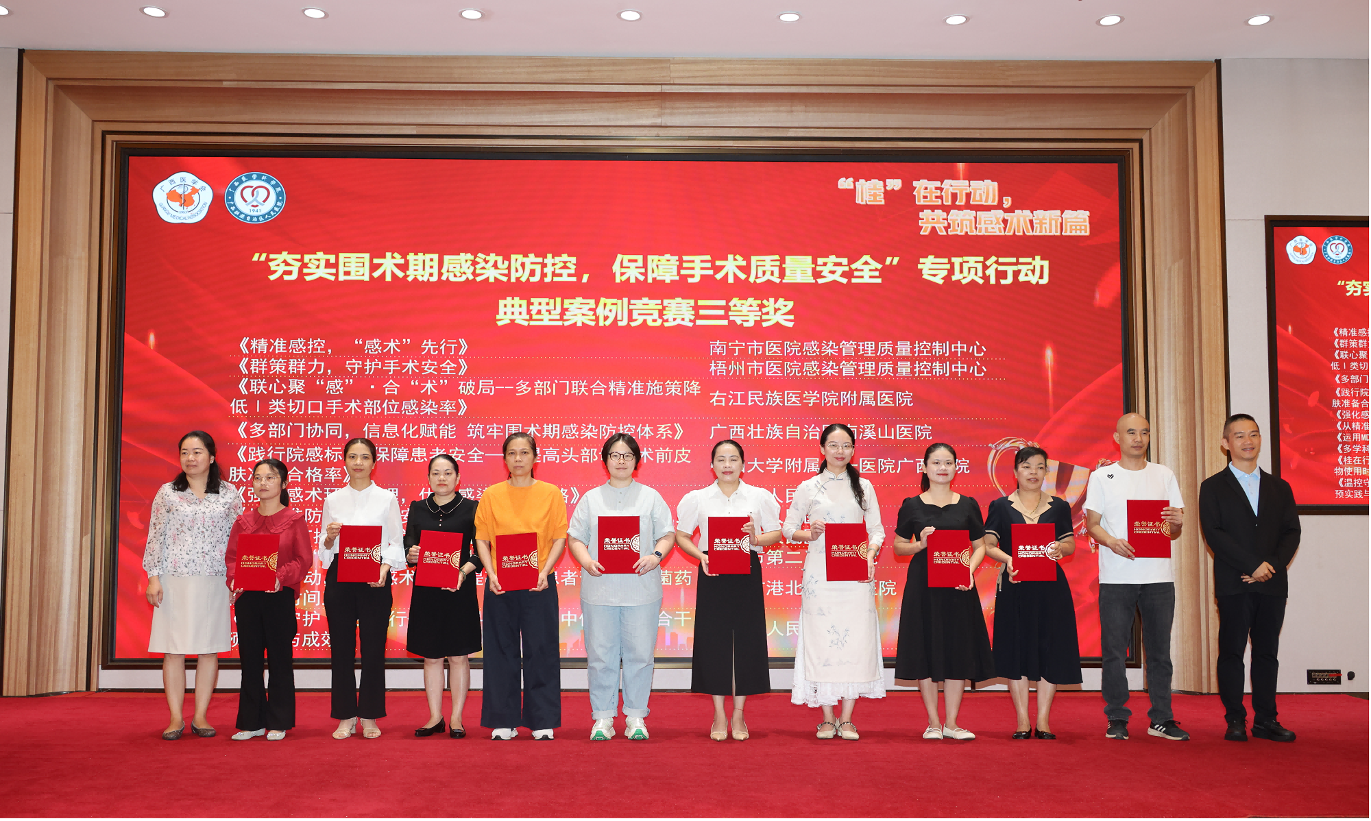 近日,在广西医学会医院感染管理学年会期间举办的多中心(学科)协作推进“感术”行动典型案例决赛中,广西壮族自治区南溪山医院感染管理科牵头,联合医务部、护理部、麻醉科、药学部及相关科室共同完成的案例《多部门协同,信息化赋能筑牢围术期感染防控体系》,凭借其创新的管理模式、显著的实践成效和精彩的现场呈现,从全区众多优秀案例中脱颖而出,荣获三等奖,彰显了该院在医院感染控制与围术期质量管理方面的卓越实力。